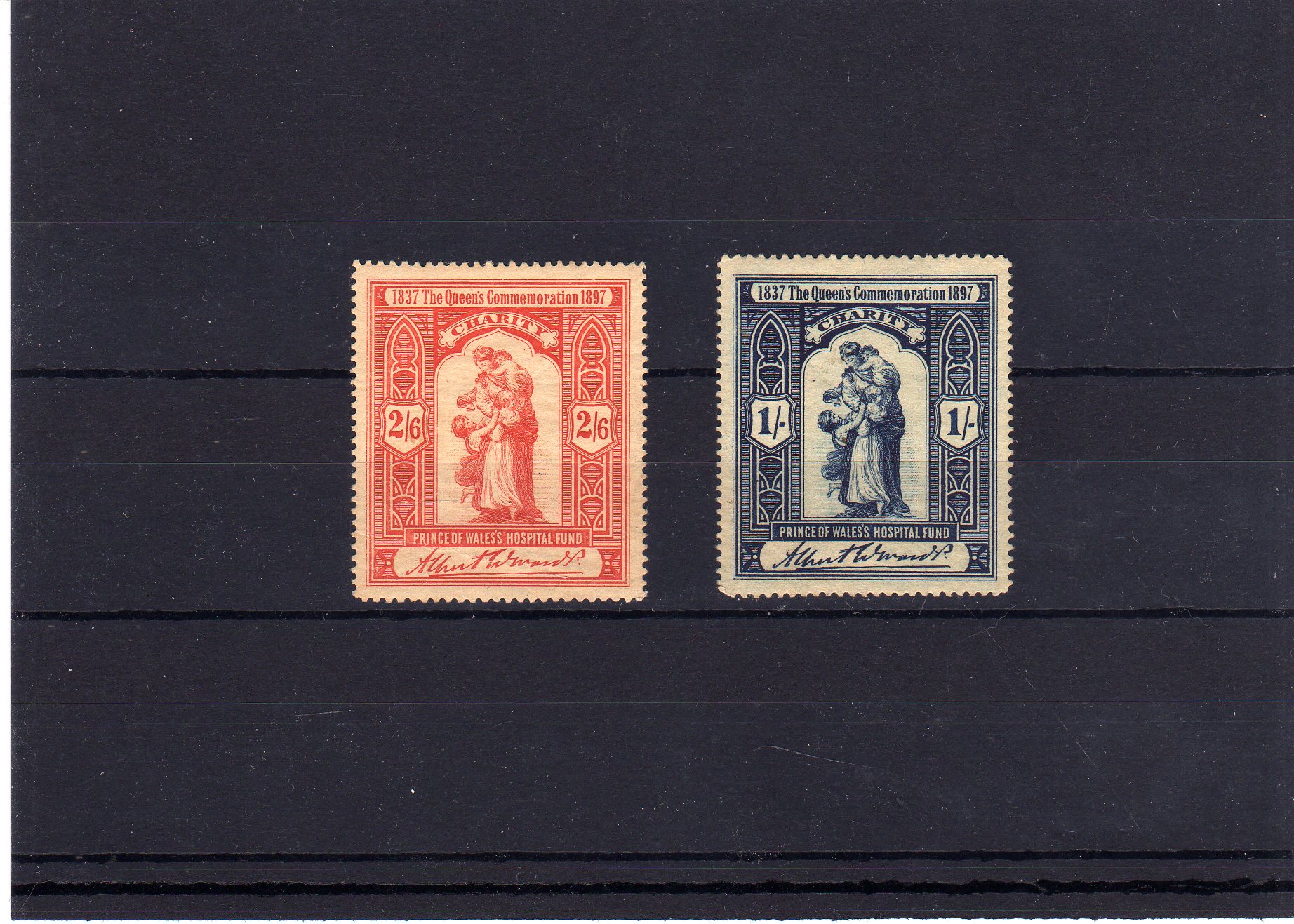 2 Wohlfahrtsmarken zu 1 bzw. 2.6 Shilling, rot und blau (Image)