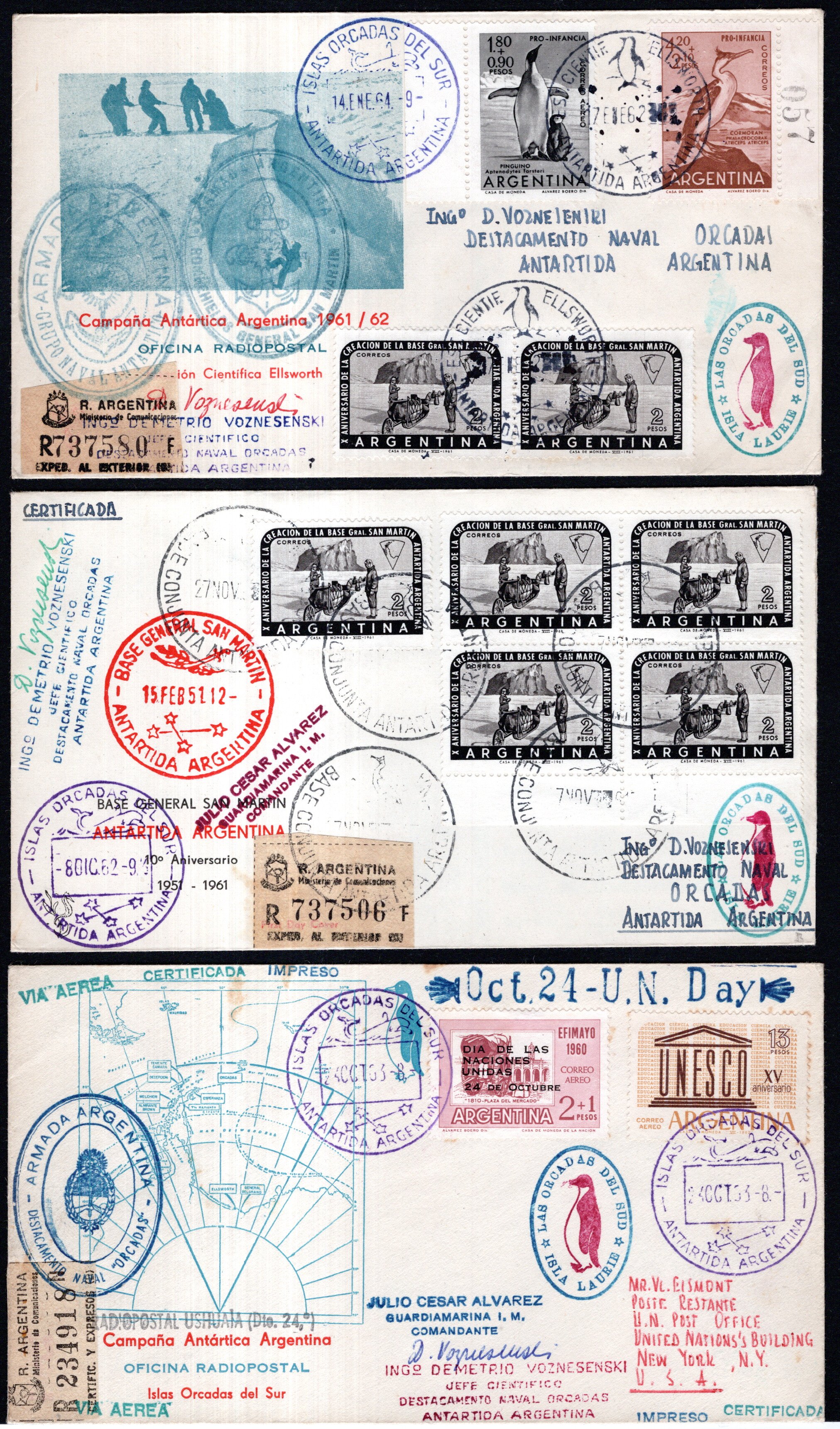 1862 imageArgentinien Expedition 1961/62, sieben R- mit verschd. Frankt., pro Beleg viele verschd. Stpl. (Image)