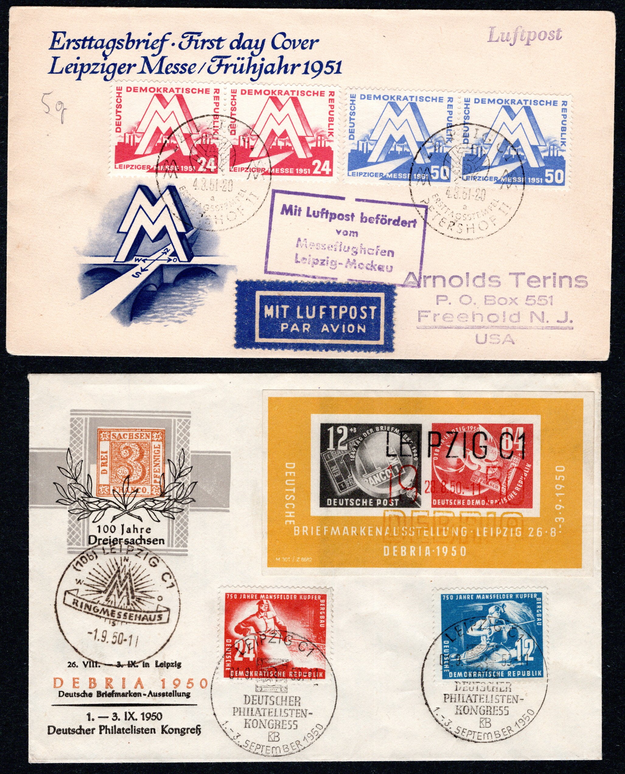 Bl.7 auf FDC 1.9.50, dazu 282-83 (je ein waag. Paar) auf Messe-FDC, 273-74 gepr. Ruscher (Cat Value 300) (Image)