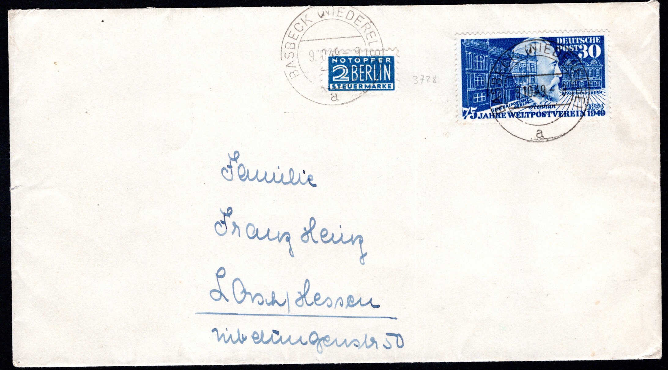 Bedarfs-FDC mit Notopfermarke, Pracht (Cat Value 1400) (Image)