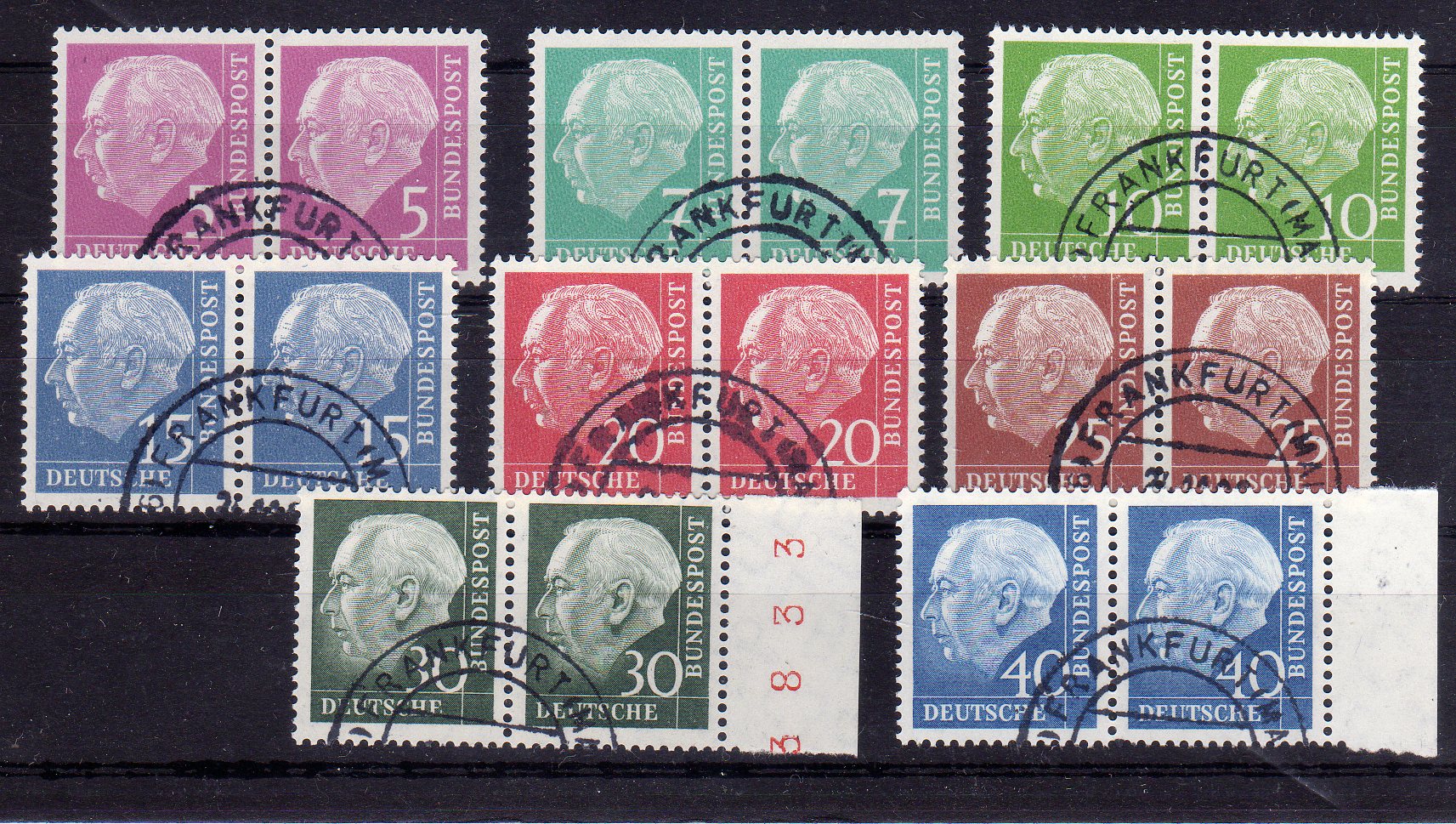 161, 189-90 sowie Heuss lumogen in waag. Paaren , Kab. (Cat Value 786) (Image)