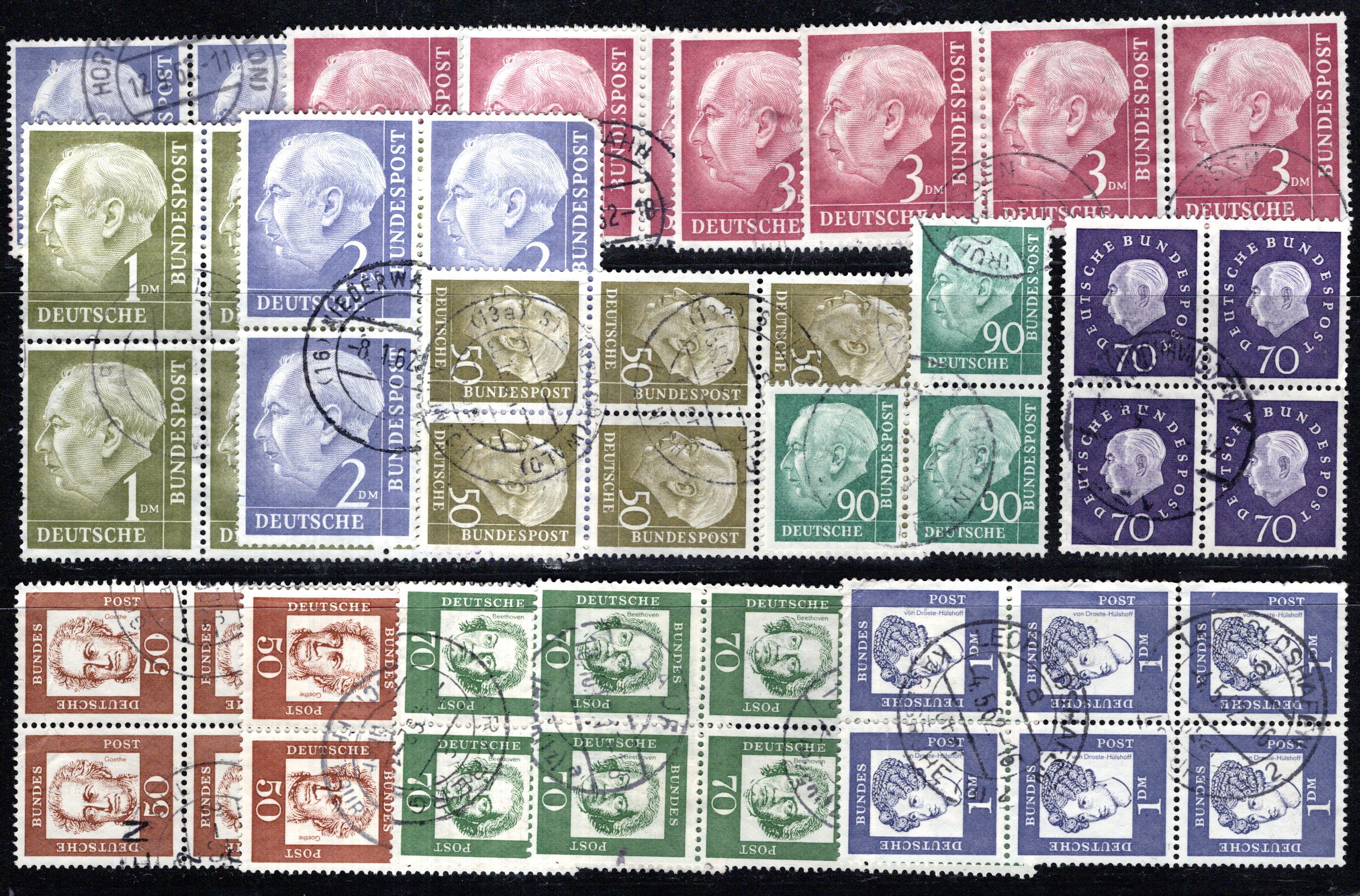 bzw. waag. Sechserblock und 356, 359 sowie Berlin 205 je im , ordentl. Bedarfsst. (ein Wert 355 eckrund) (Cat Value 450) (Image)