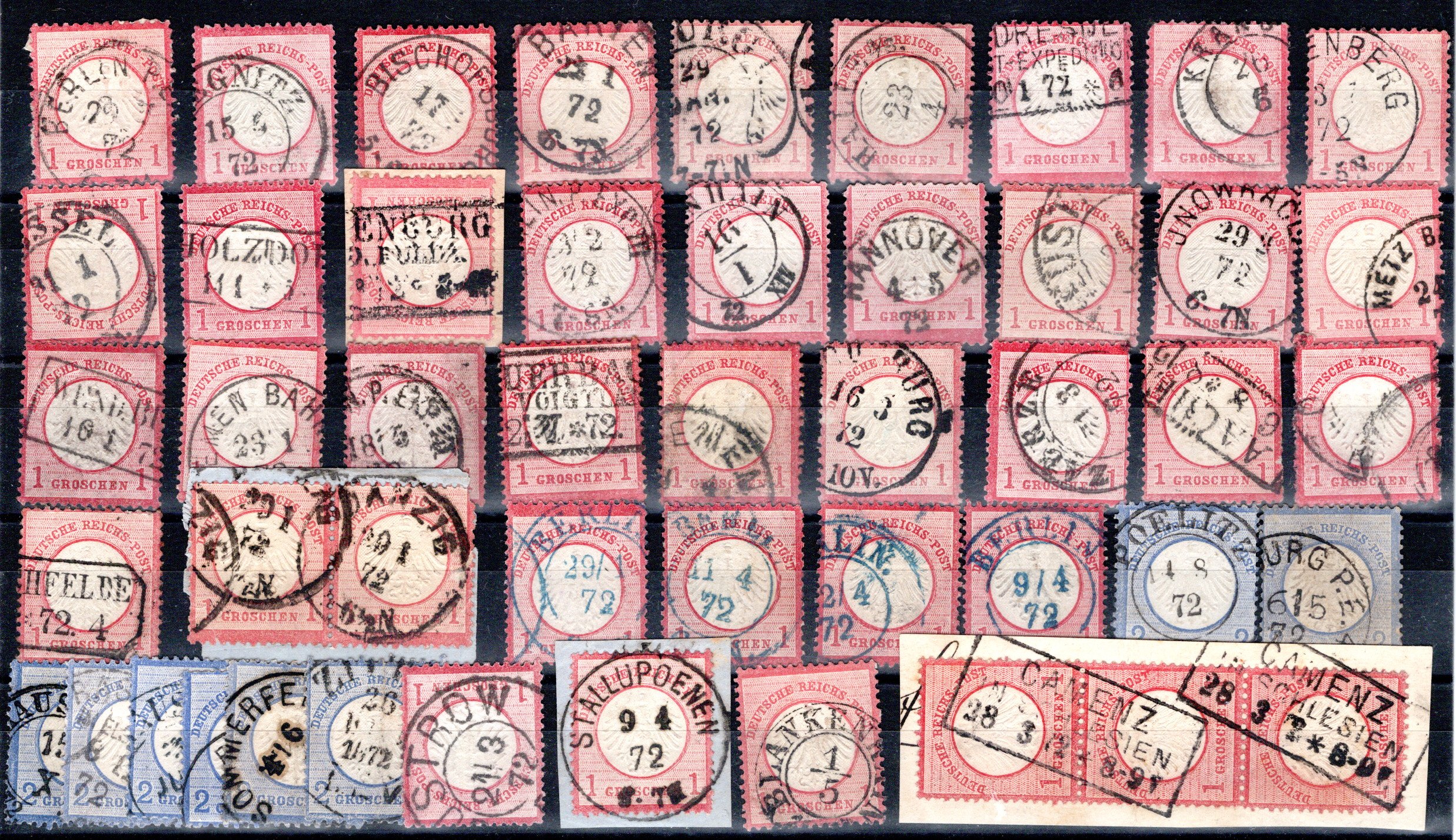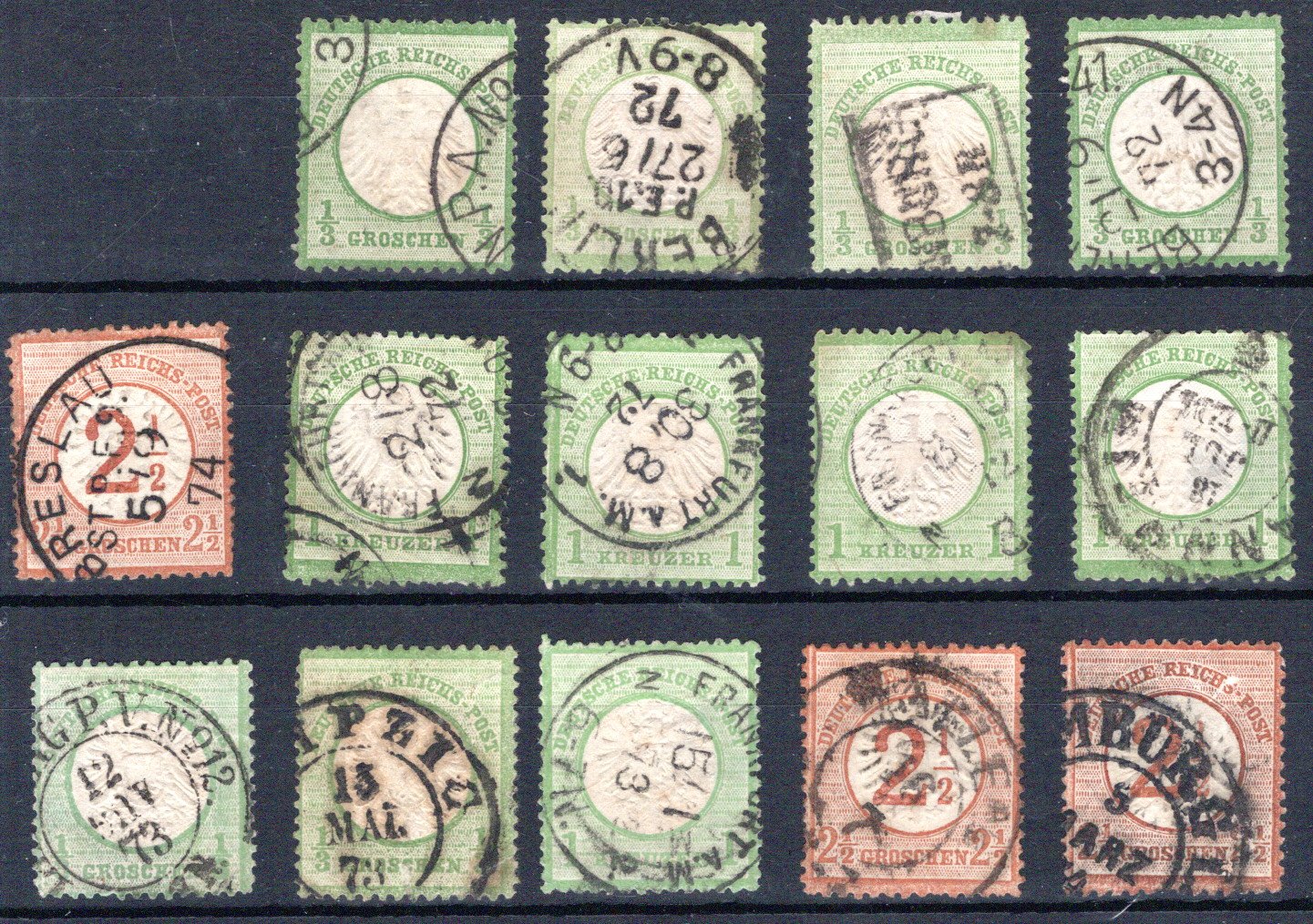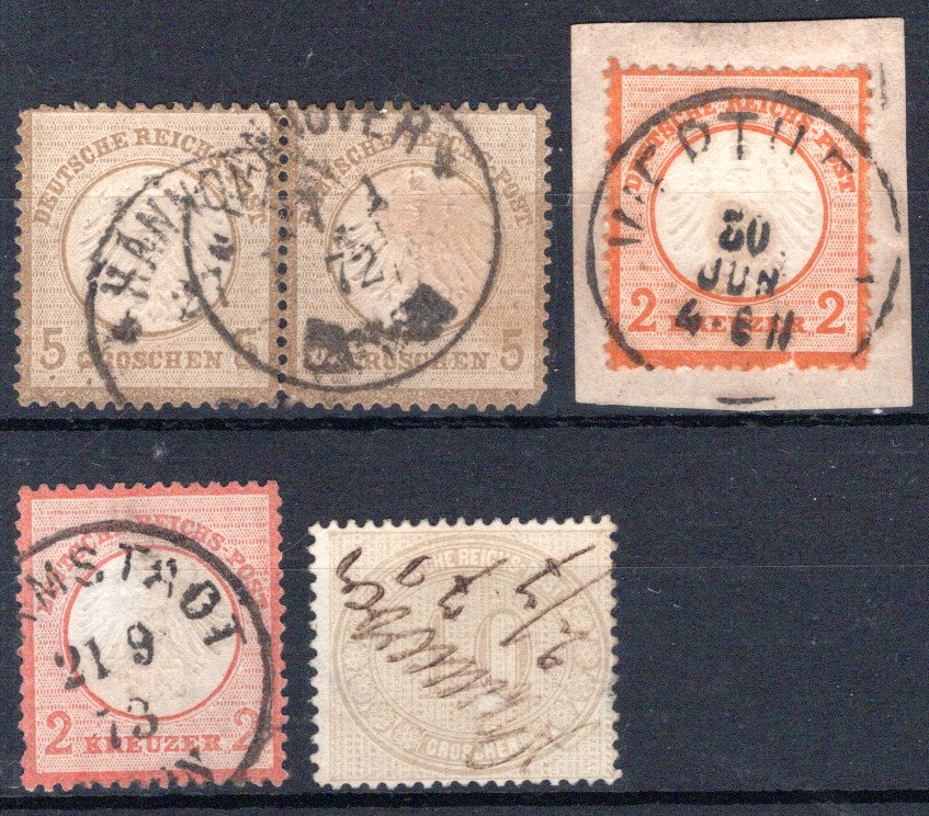9, 10(2), 17, 21-22, 25 , Pracht, Nr.17 HE Stpl. Mühlhausen 31.10.74 (Spalink 26-3 =150.-) (Cat Value 690) (Image)