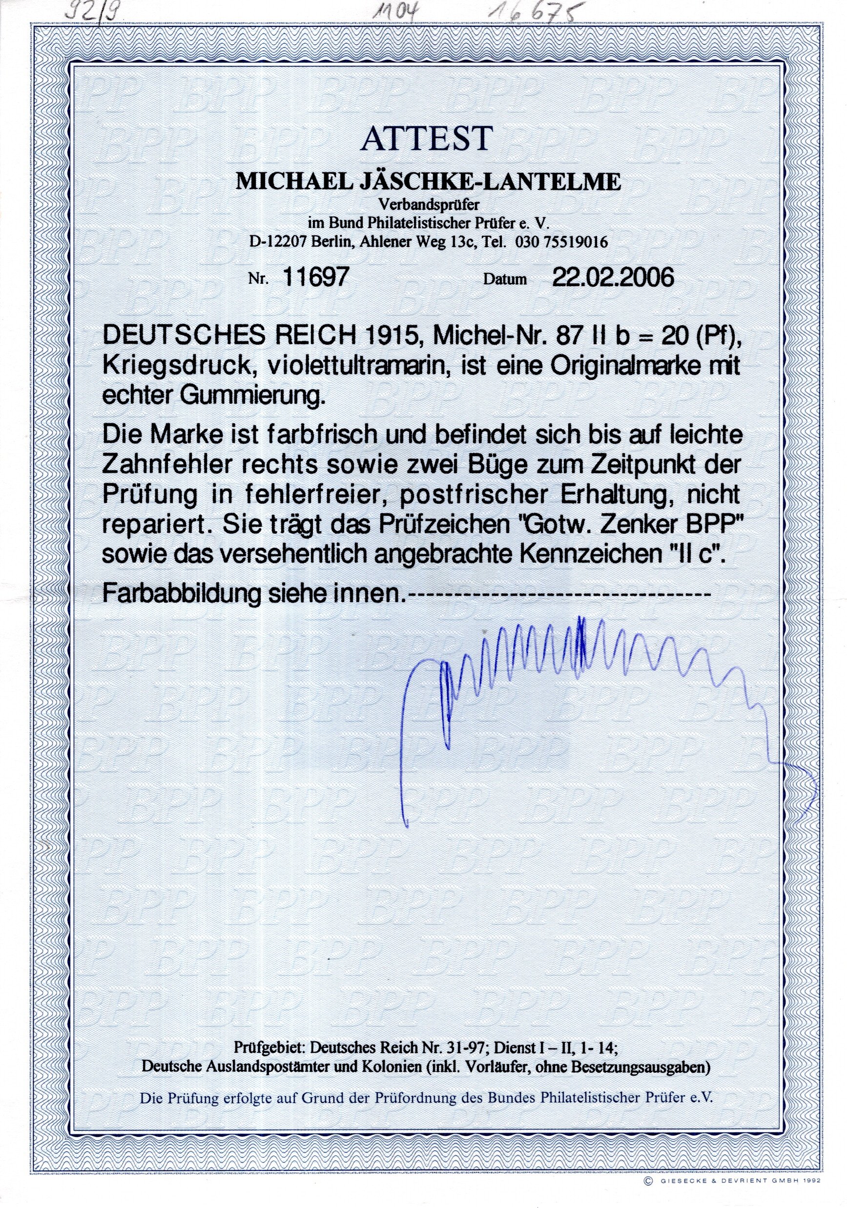 gepr. Jäschke-L. (Cat Value 440) (Image)