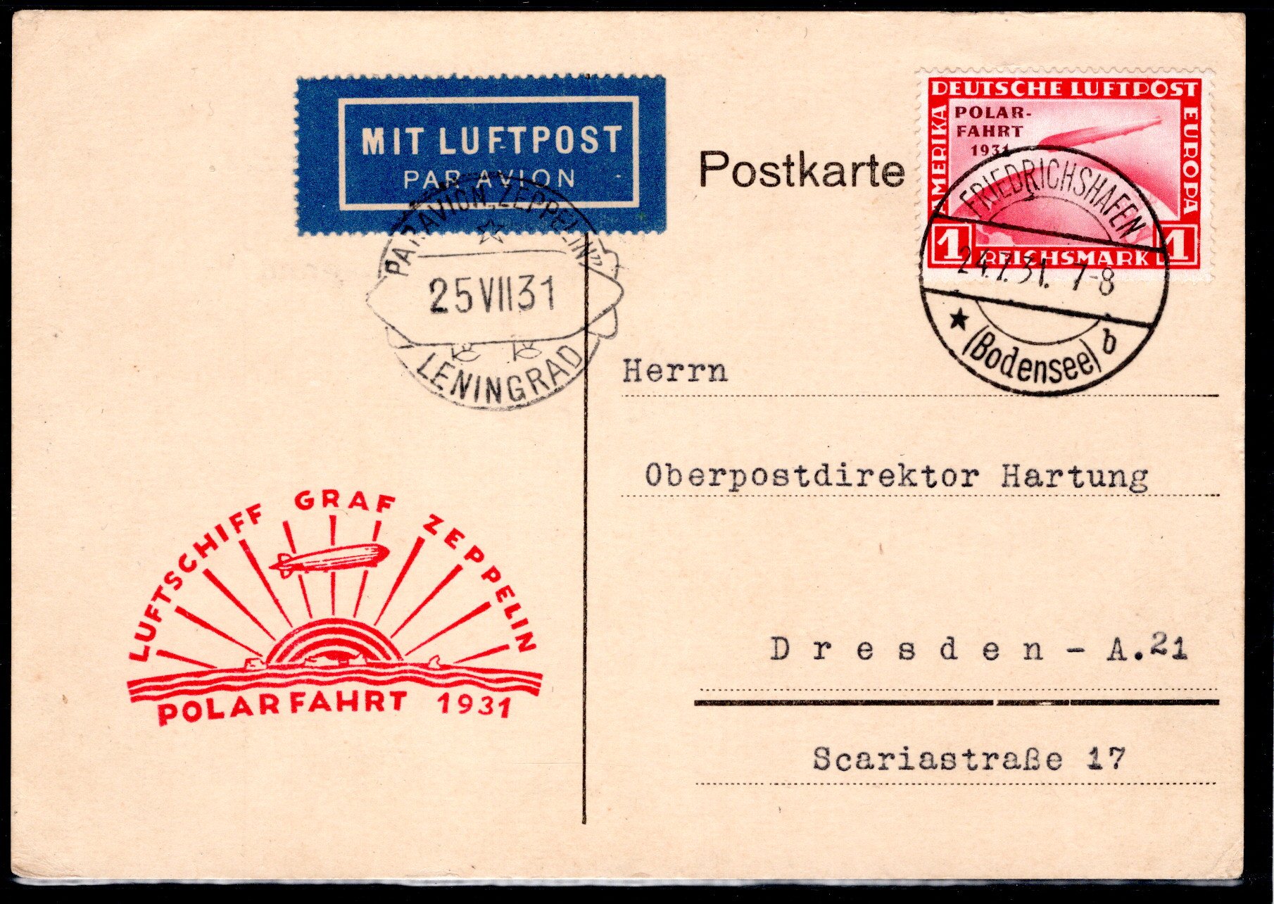 Portger. EF Polarfahrt 1931 mit Tagesstpl. Friedrichshafen via Leningrad nach Dresden, Kab. (Cat Value 275) (Image)