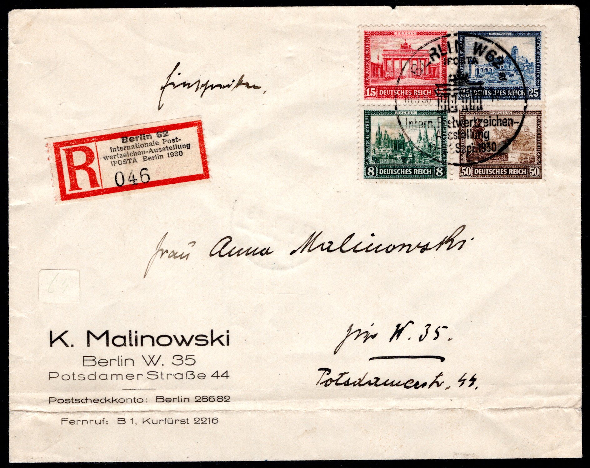 Herzst. auf Bl.1 auf R- innerhalb Berlins gelaufen, Brief unten senkr. gefaltet, Bedarf (Image)
