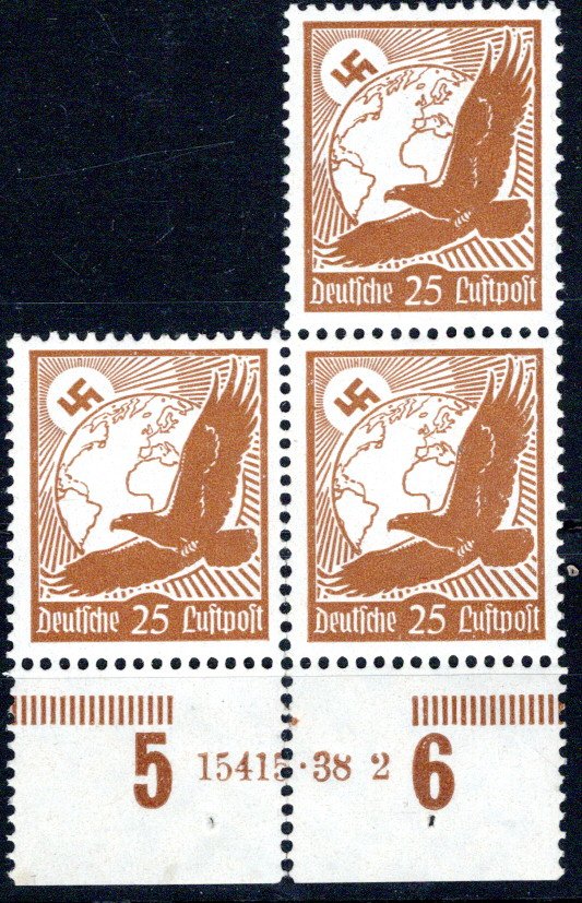 Unterrand-Dreierblock mit HAN (angetrennt), Pracht (Cat Value 300) (Image)