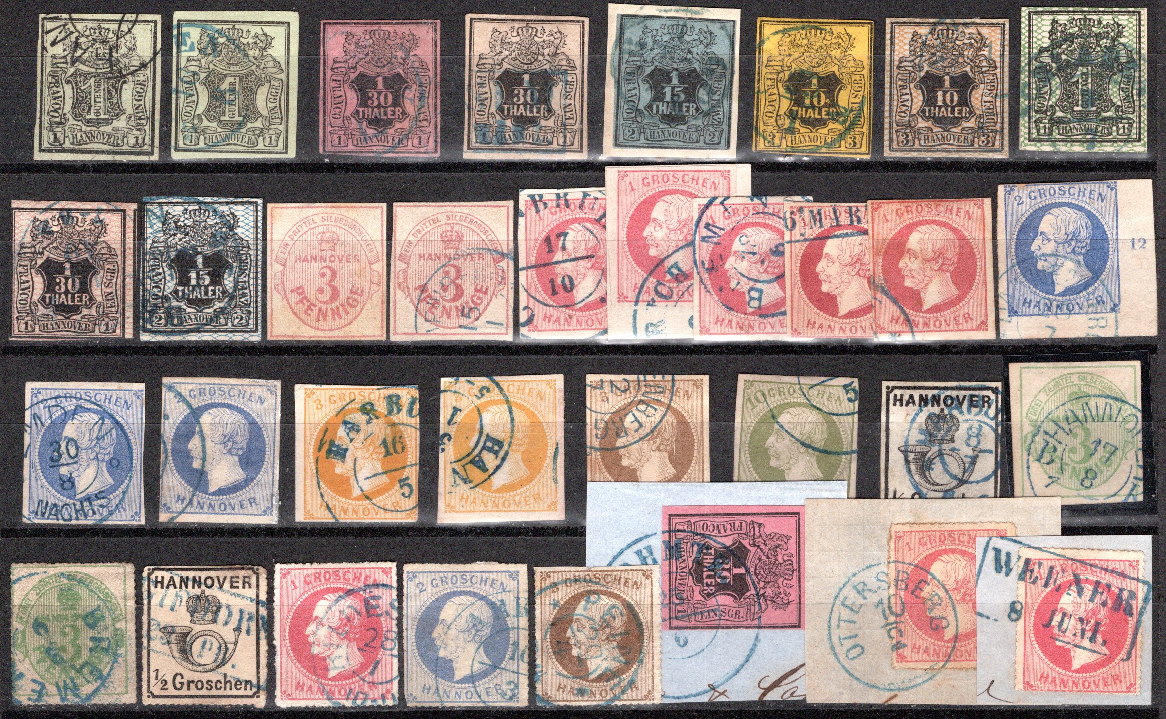 Schöner zentr. DKr. Harburg und 23x/y, 24y sowie 3, 5, 10(4), Pracht (Cat Value 535) (Image)
