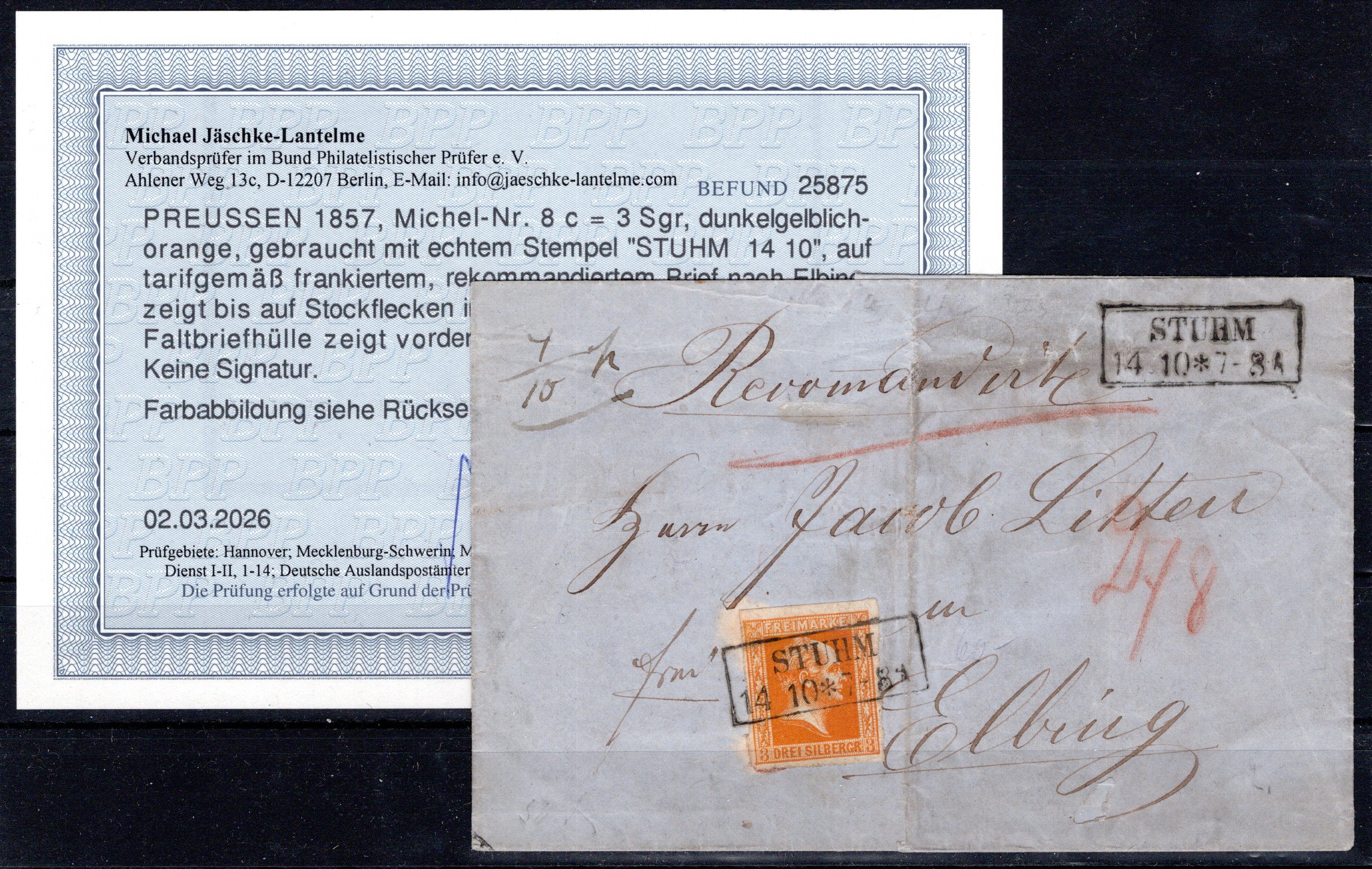 Portger. EF auf R-Brief nach Elbing mit Ra2 ""Stuhm 14 10", Fotobefund Jäschke-L. bzw. Bedarfserhaltung (Cat Value 500) (Image)
