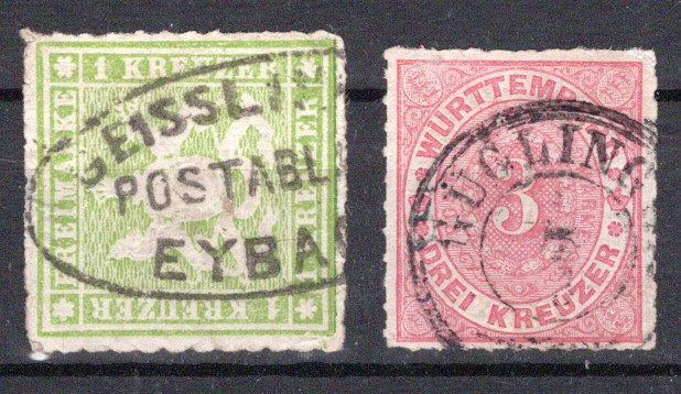 bl. K1 Ludwigsburg bzw. schw. K3 Kornthal, dazu Bayern 15 mit Postablage Nandlstadt sowie Th.&Taxis 32 mit Nr.Stpl. "117", Prachtabschläge, Grobe 230.- (Image)