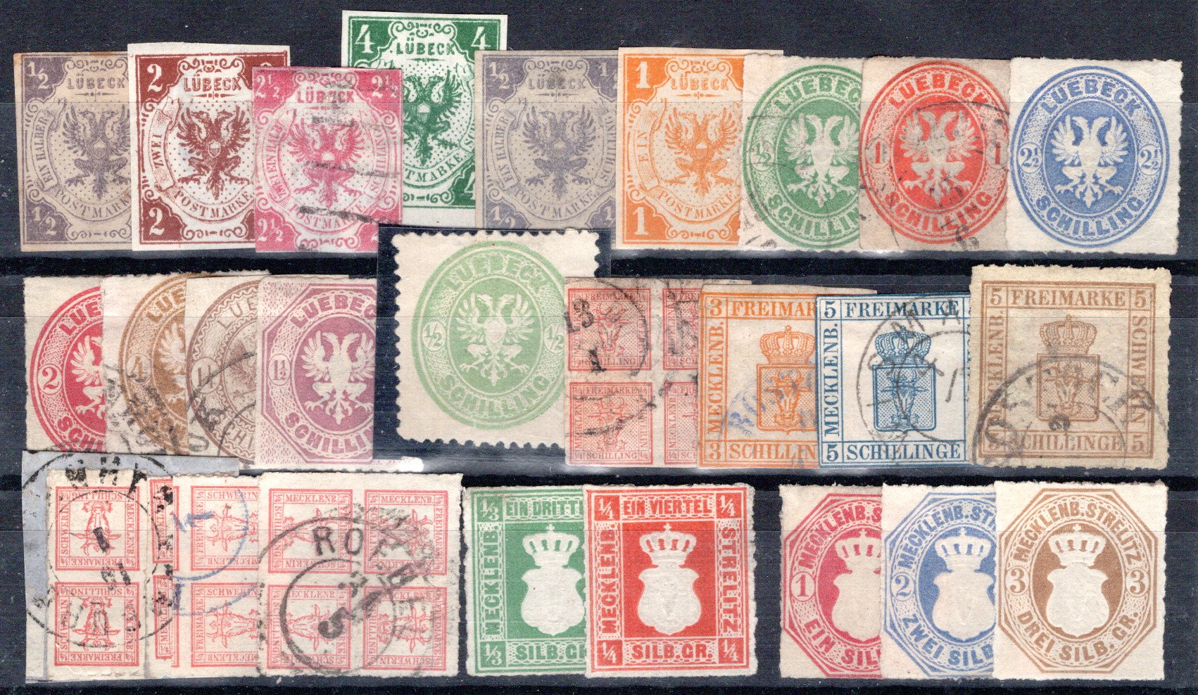 5292 imageKl. Lot Norddt. Staaten Lübeck, Meckl.Schwerin/Strelitz, unterschdl., dabei Lübeck Nr.4 unberechnet, da nicht gepr., Mi.ca.2200.- (Image)