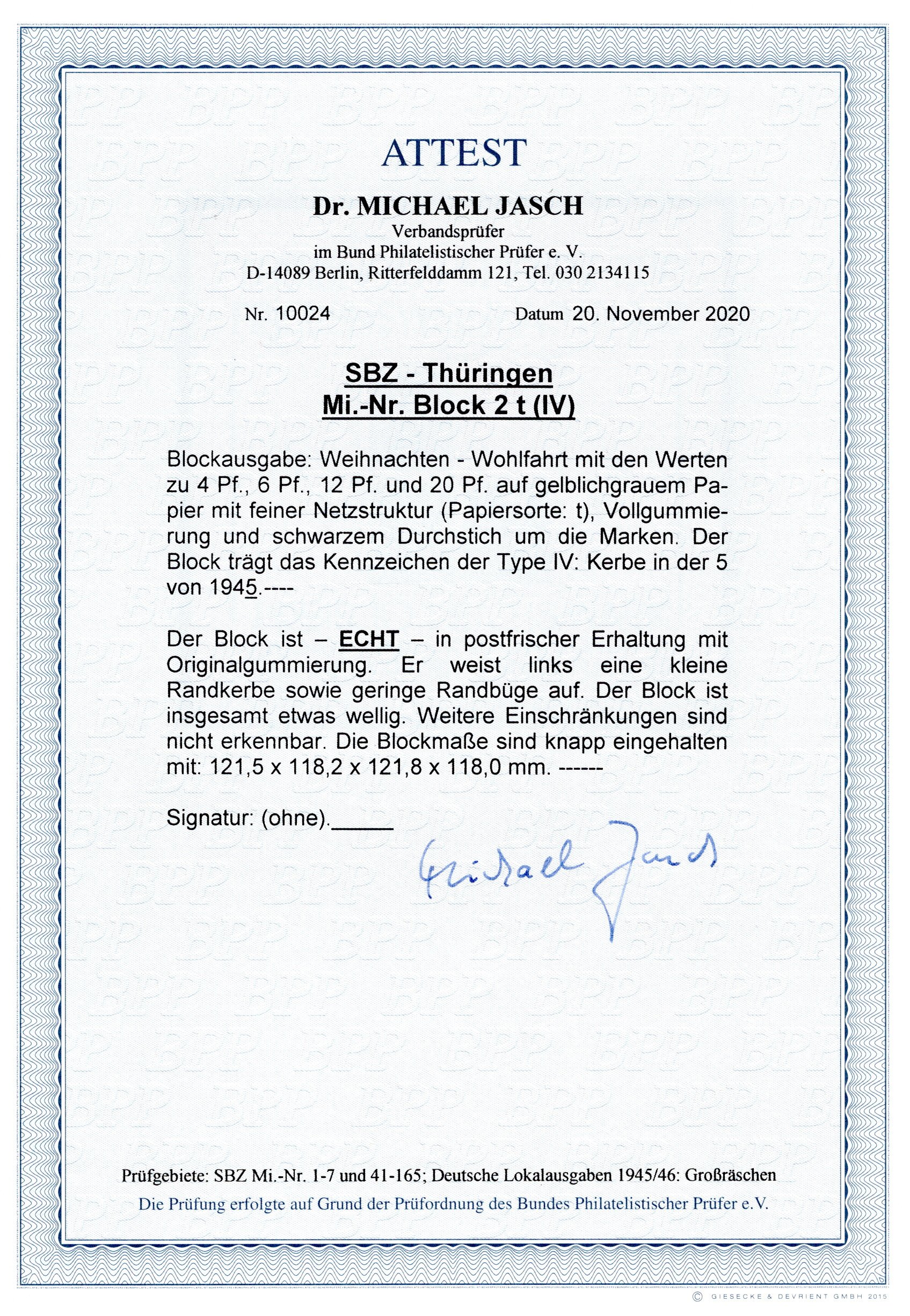 Pracht, Bl. 4b 1mm Formatverkleinert (Cat Value 1520) (Image)
