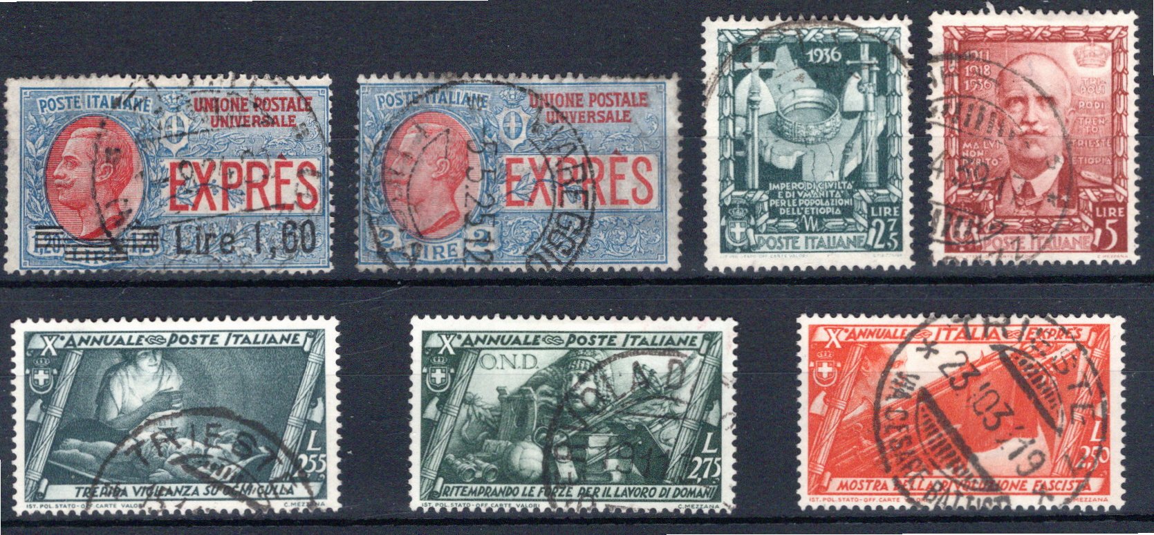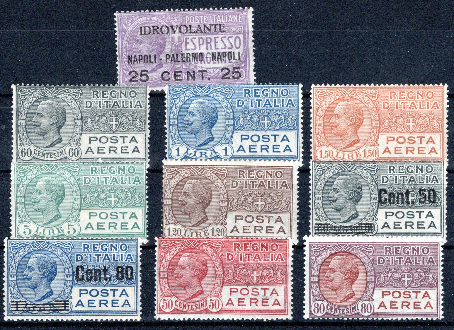 je mit Aufdruck "Saggio", 8 meist ungez. Probedrucke (Mi. 10000.-) (Image)