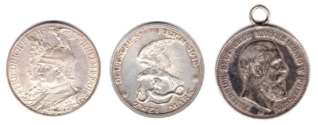 7228 imageDt.Reich, drei St. 2 Mark, Jaeger Nr.98 (mit Öse), Nr.105 u. 109, SS-VZ (Image)