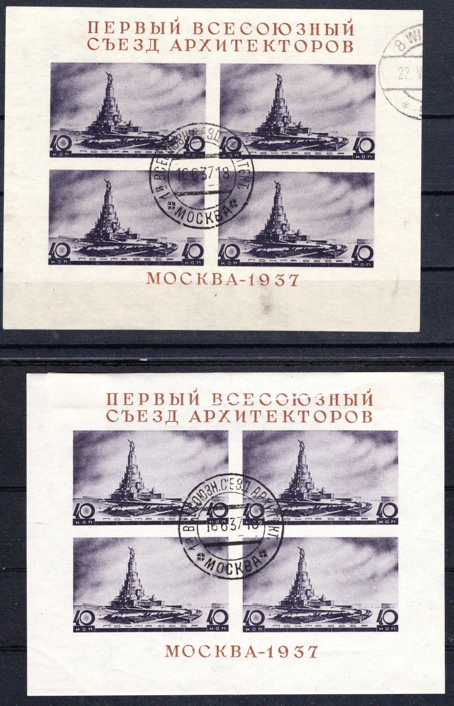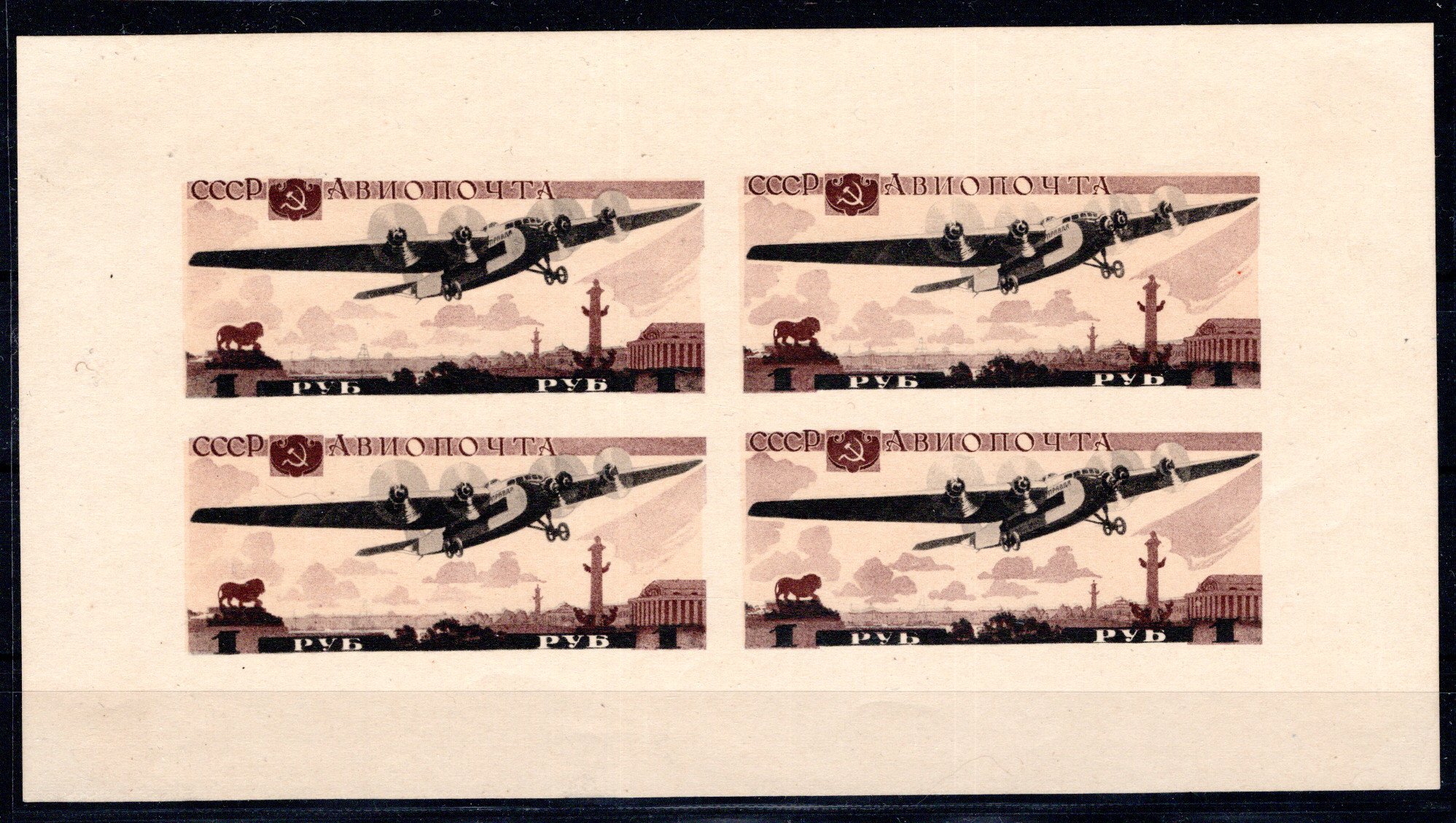 Blöcke mit Abart "großer Farbpunkt rechte untere Marke", minimal unterschdl. (Cat Value 495) (Image)