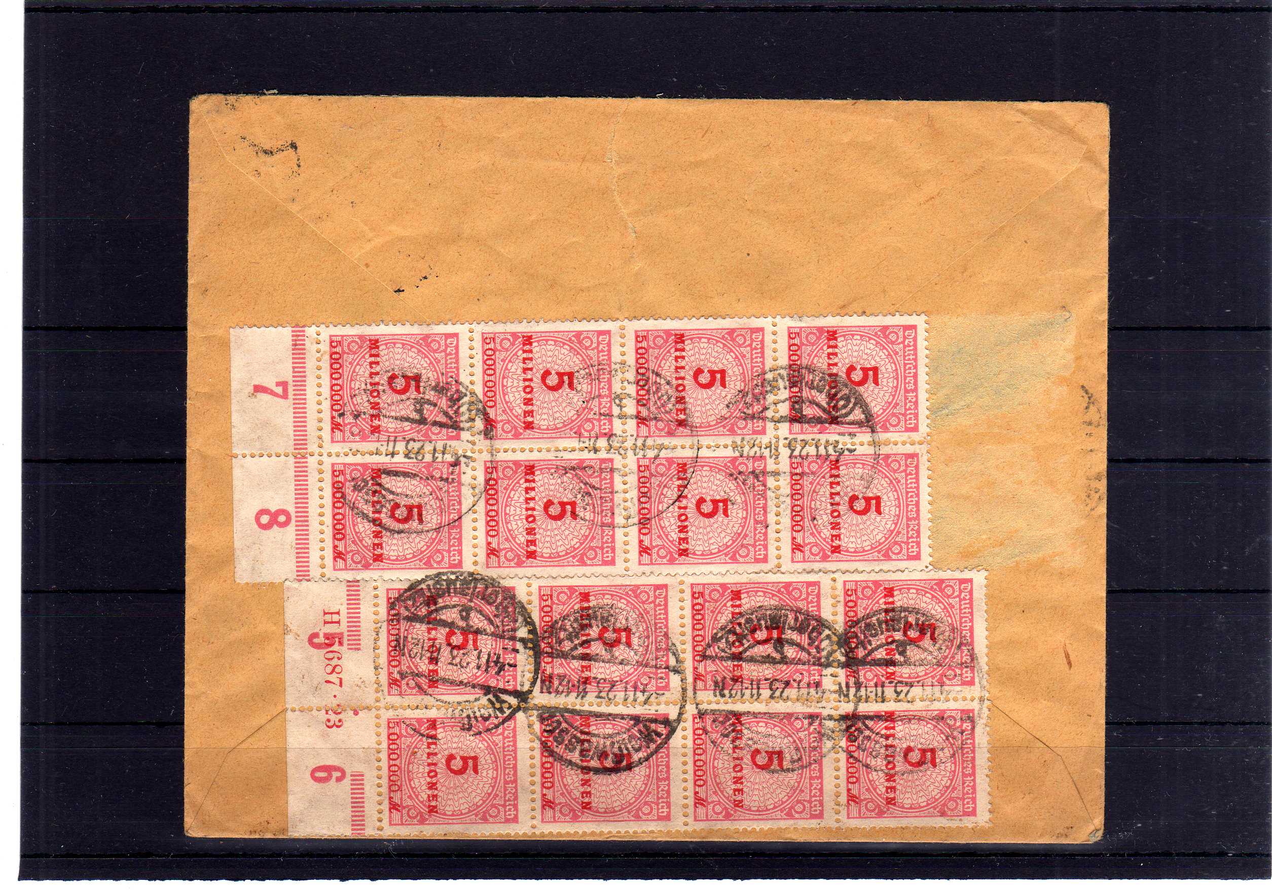 Zehner-Unterrand-Blöcke u. senkr. Paar auf hübschem Firmenbrief, 1 Block mit HAN 5687.23 (2 weitere Werte abgefallen), Pracht, Mi. ohne Preis (Image)