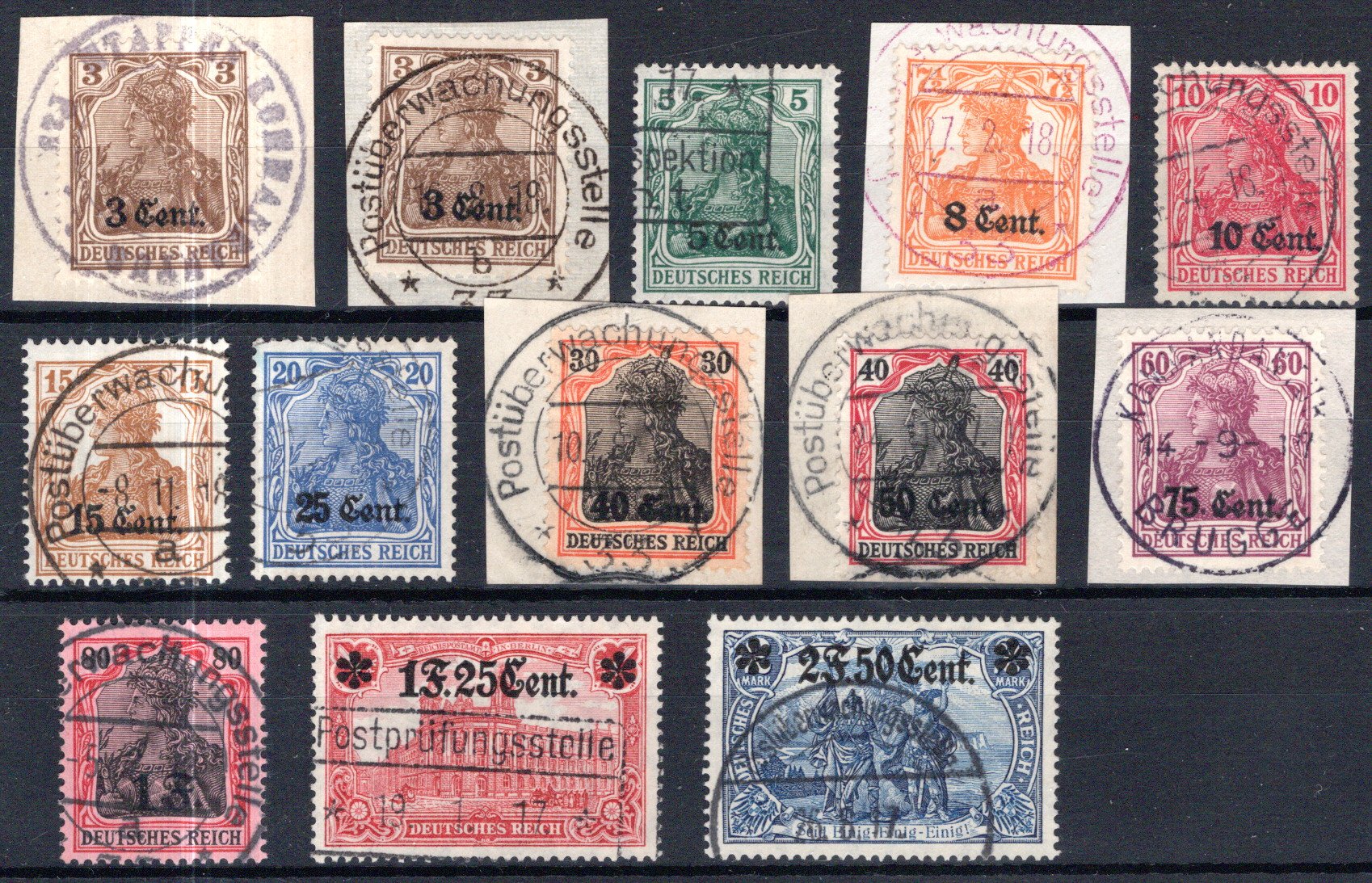 5363 -Slg. auf Leuchtt.SF-Text, u.a. Belgien 1-24(23 ), Etappe West 1-12(teils ), Ober Ost 1-12, Rumänien P1-2, Kriegsst. P8 etc., Mi.640.-