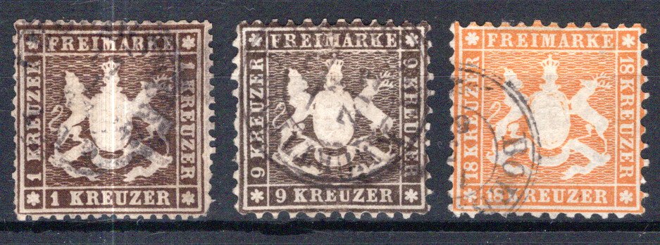 bl. K1 Ludwigsburg bzw. schw. K3 Kornthal, dazu Bayern 15 mit Postablage Nandlstadt sowie Th.&Taxis 32 mit Nr.Stpl. "117", Prachtabschläge, Grobe 230.- (Image)