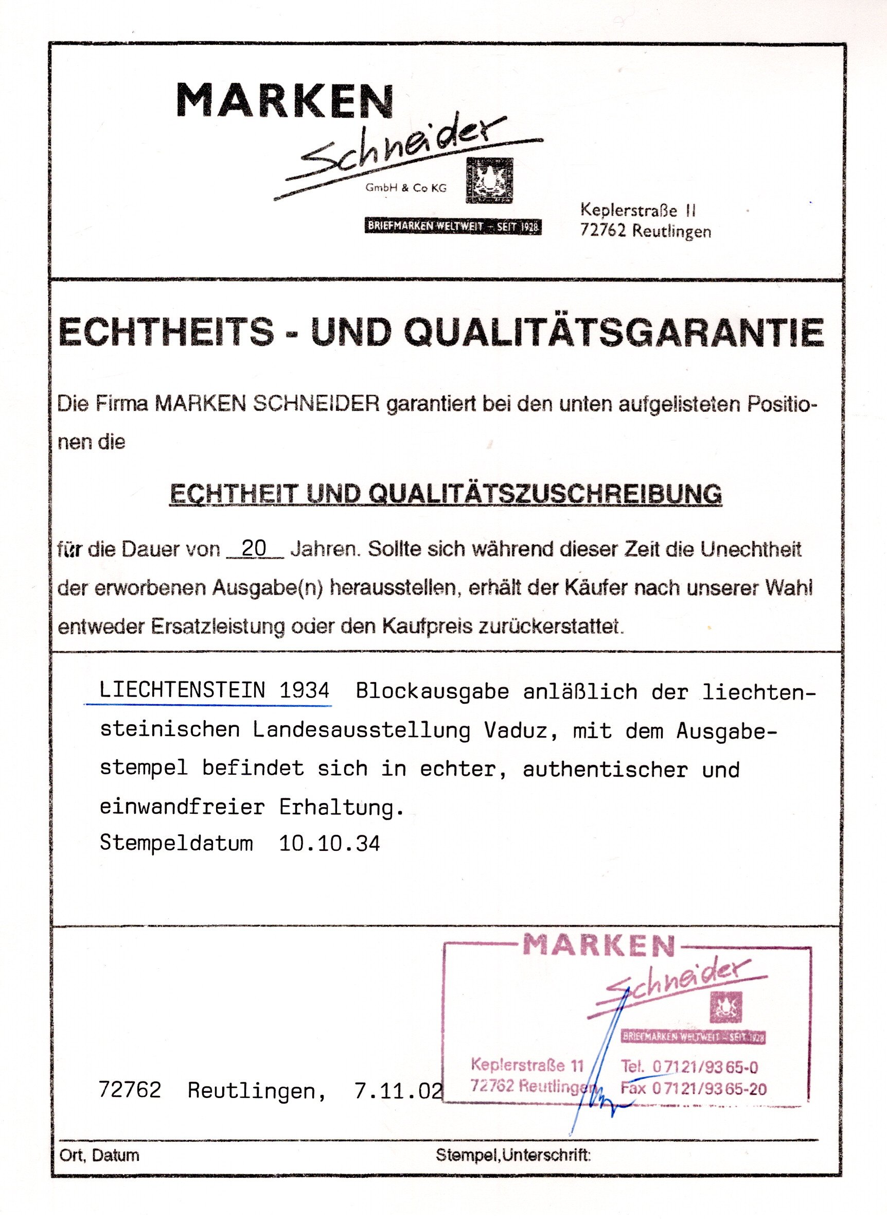 Ausstellungsstempel, Luxus, Befund Marken Schneider (Cat Value 3000) (Image)