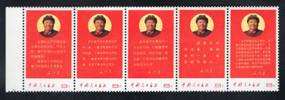 1968 Statement About Cultural Revolution Strip of 5, mint never hinged, with sheet margin at left, fresh and never folded, very fine. A very rare strip, especially in this pristine condition.....Scott U$ 7,000