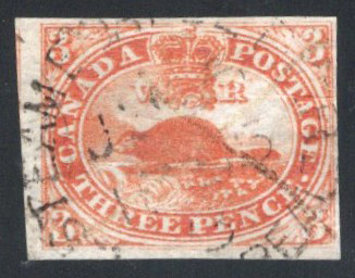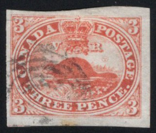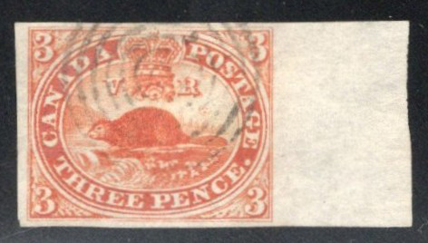 Beaver Imperforate, on Thin Crisp Paper, used with clean and unobtrusive concentric ring cancel with sheet margin at right (from position A60). The stamp possesses rich, bright colour and has a very detailed impression, with large margins,