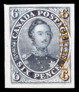 Plate Proof in Grey, with Vertical SPECIMEN Overprint in Orange, on card-mounted India paper, very fine.