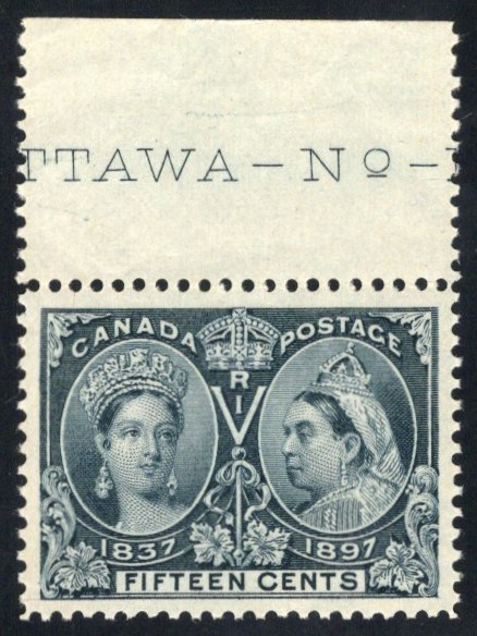 fine. A unique plate inscription item, perforation errors are rare in the Jubilee issue. (Scan 1)