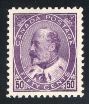 306 og 95i image1908 50c Deep Purple Edward VII, mint lightly hinged, with deep rich colour, well centered between large and even margins, fresh and extremely fine. A gorgeous and desirable stamp.