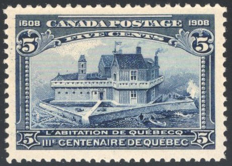 317 nh 99 image1908 5c Blue Québec Tercentenary, mint never hinged, very well centered and fresh, very fine plus.