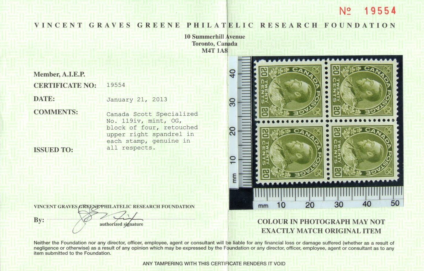 2013 Greene Foundation certificate. (Scan 1)