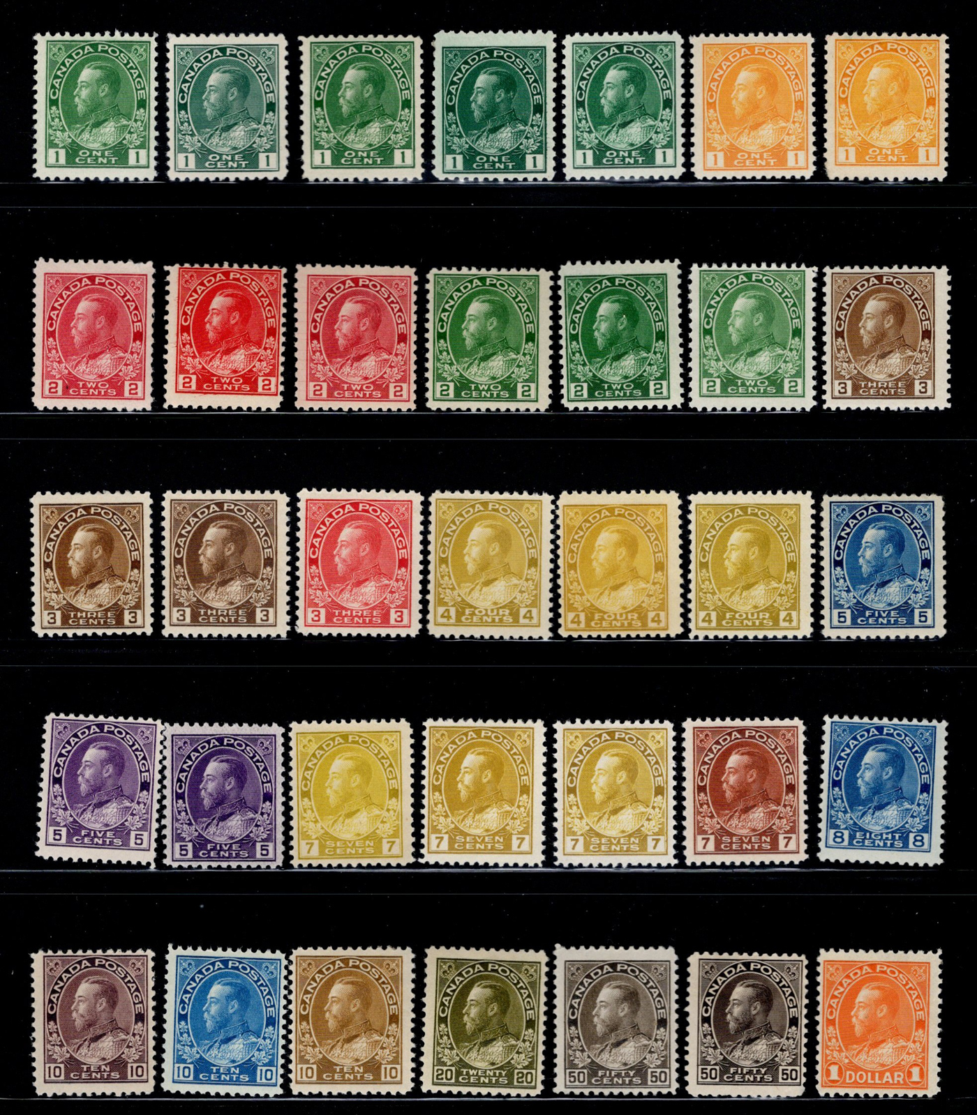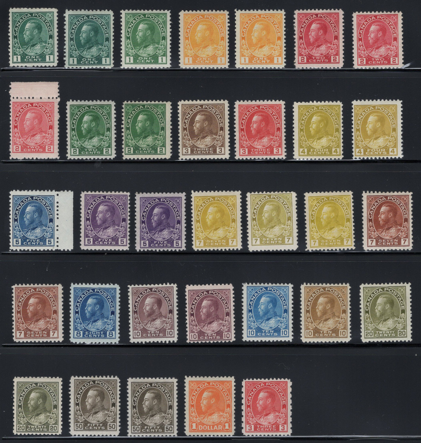 Admiral Extended Set, with 35 mint hinged stamps, including a basic set augmented by distinct shades of several values. Overall fine or better, catalogue value is for the least valuable shades listed only.
