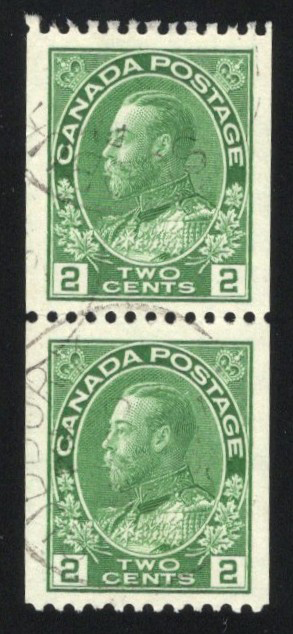Admiral Coil, Perforated 12 Horizontally, a used pair with clean Sudbury c.d.s. cancels, fresh and very fine. A difficult pair to obtain in this condition.