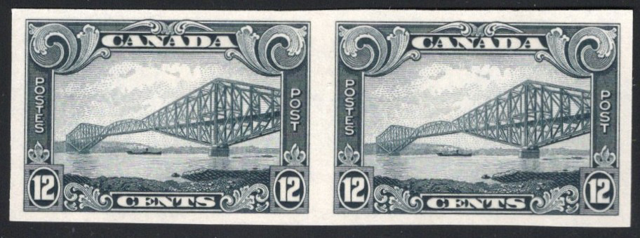 398 nh 156a image1929 12c Grey Québec Bridge Imperforate, a mint never hinged horizontal pair, very fine.