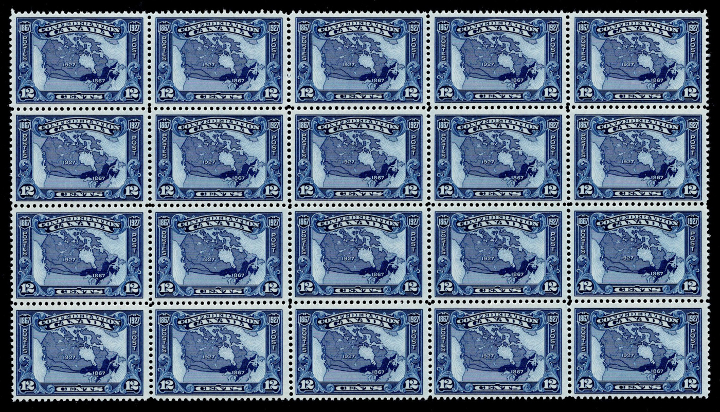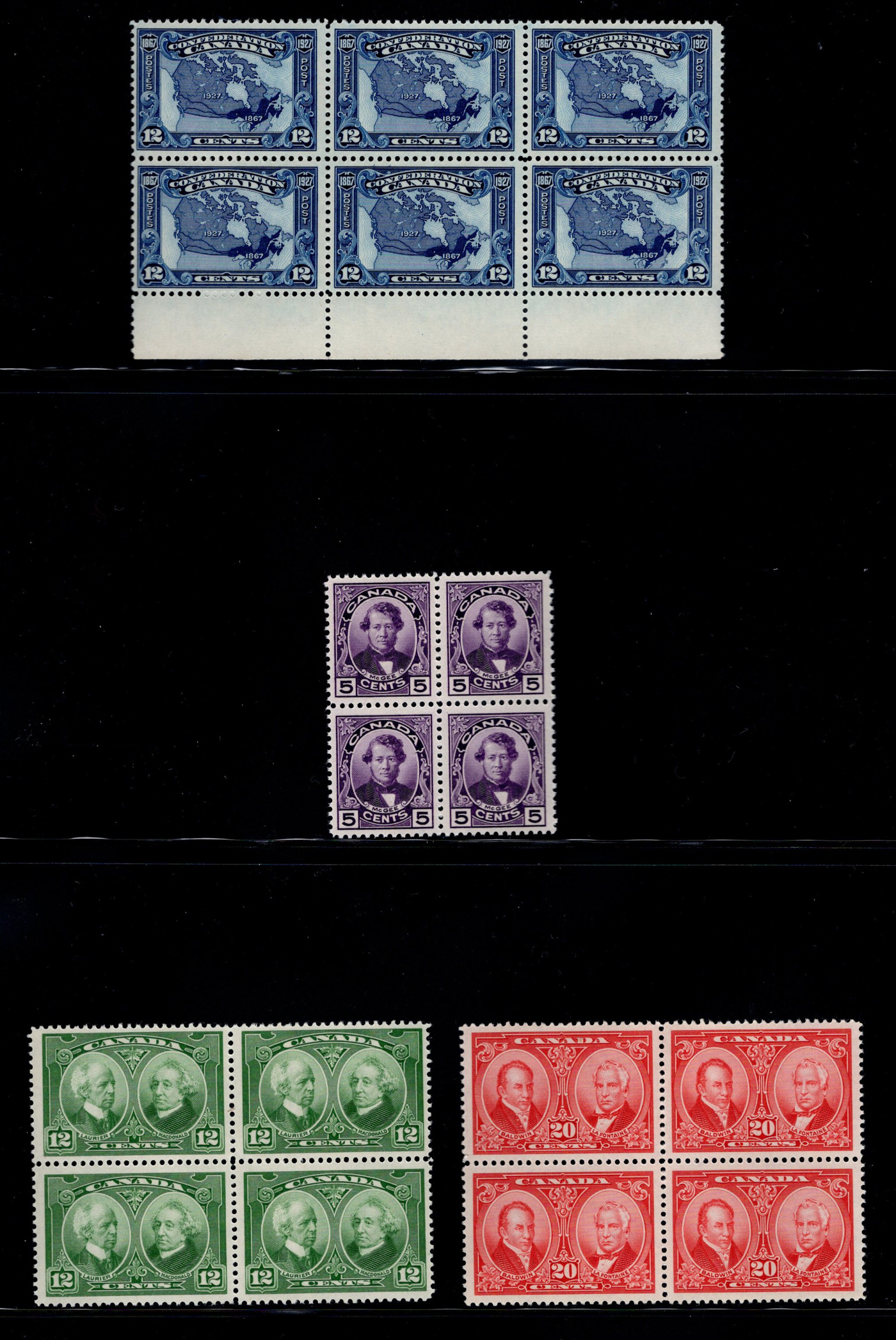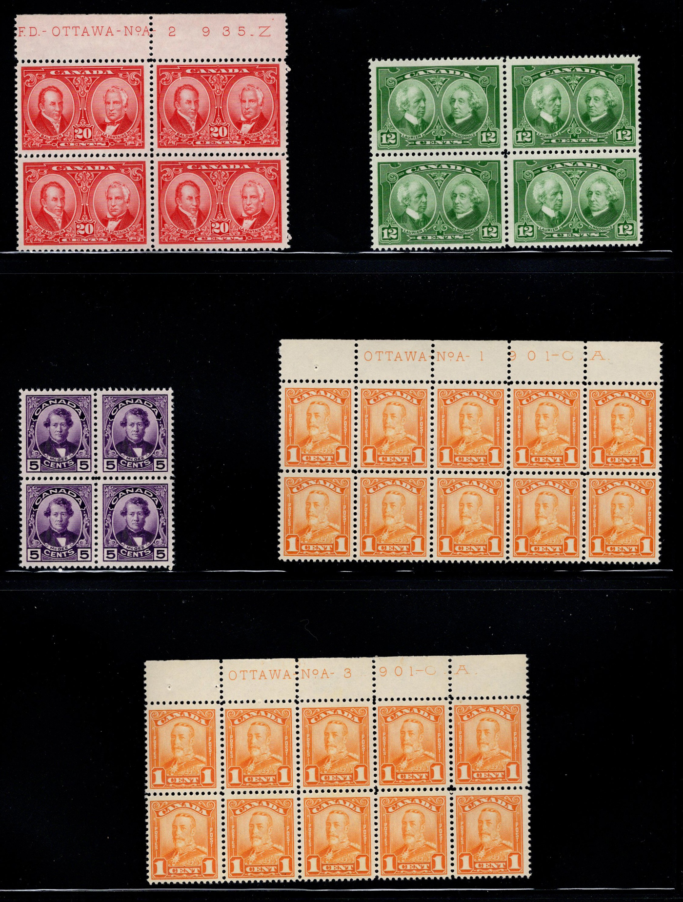 388 og/nh 141-145 image1927 1c to 12c Confederation Set, each value in a mint block of 16, the 1c, 2c and 5c each have two hinged stamps, the other values each have four hinged stamps, very fine. (Scan 1) (Scan 2) (All Scans)