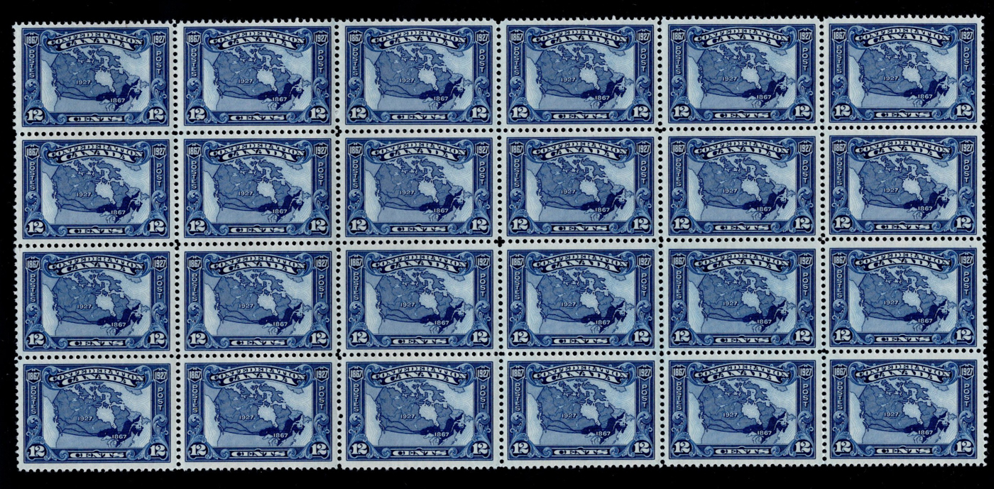 389 nh 145 image1927 12c Dark Blue Map of Canada, a mint never hinged block of 24, overall very fine.