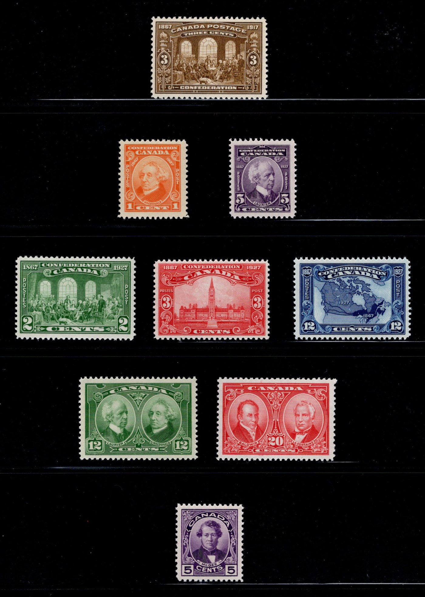393 O 135/148 image1917 and 1927 Historical and Confederation Issues, with #s 135, 141-145 and 146-148, all mint never hinged and very fine.
