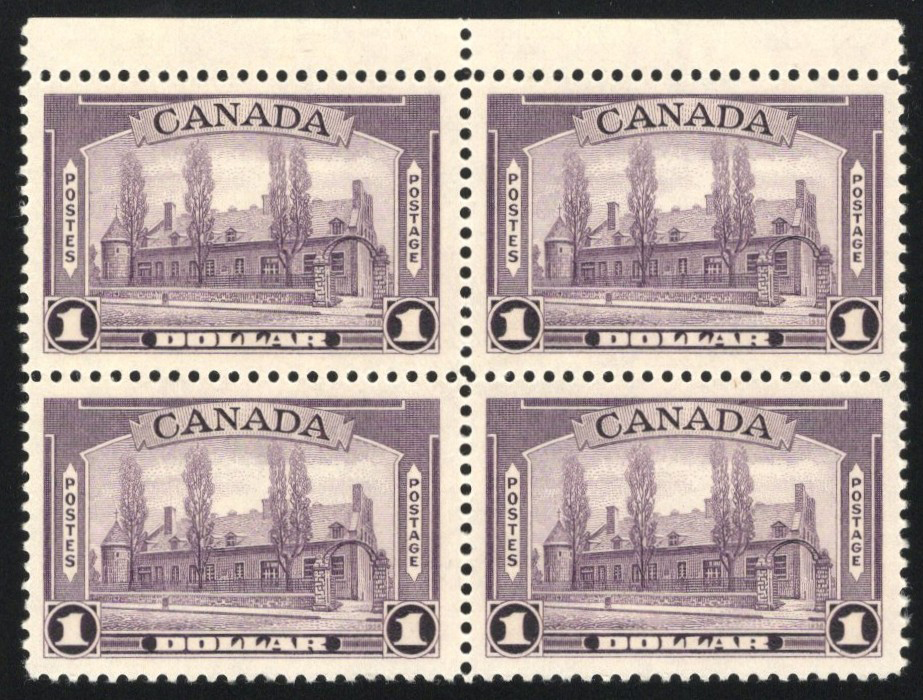 Château de Ramezay, a mint never hinged block of four, with sheet margin at top, well centered and very fine.