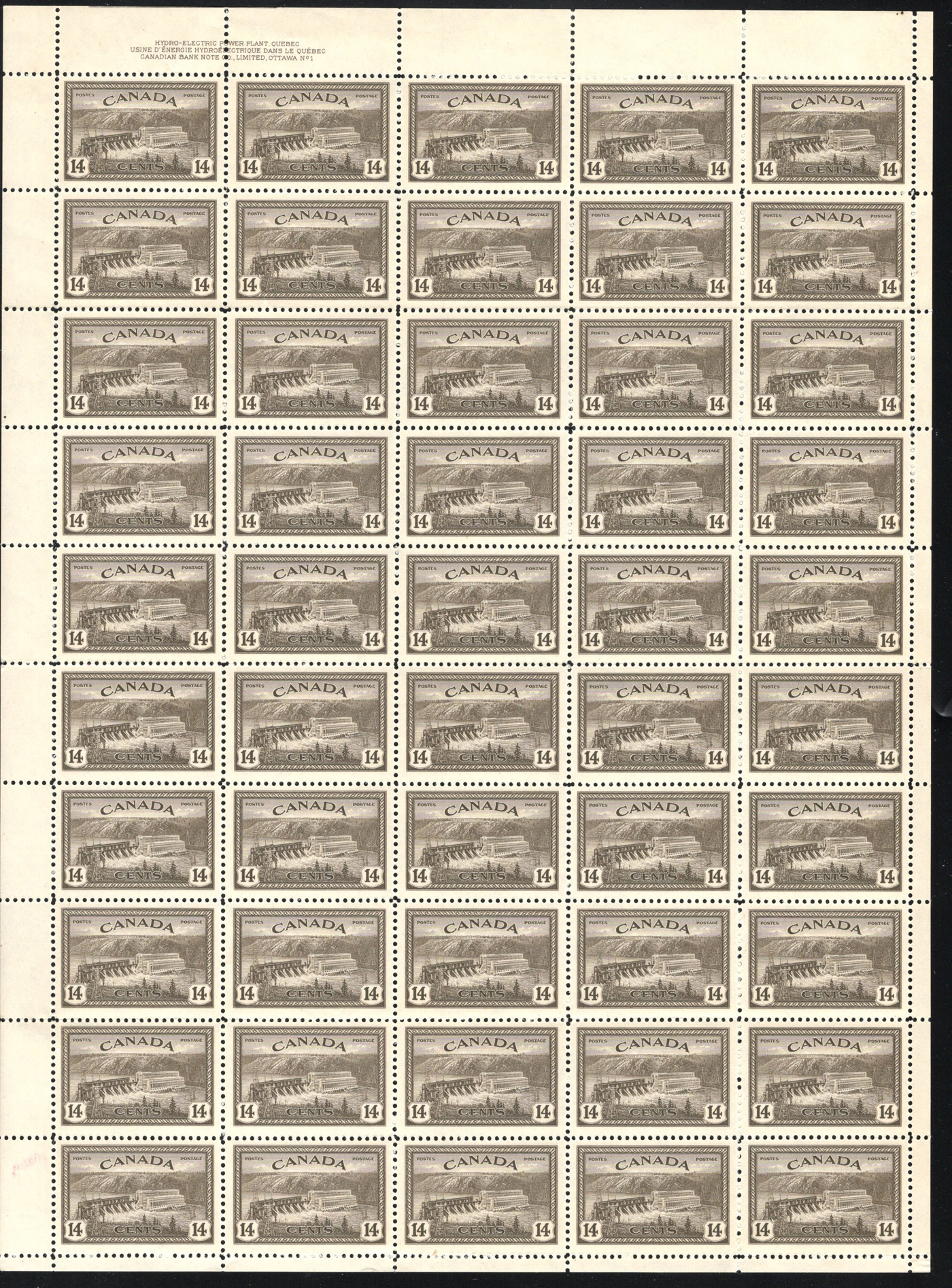 Hydroelectric Station, a mint never hinged full sheet of 50, with plate 1 inscription at upper left, with a couple of folds, fresh and very fine.