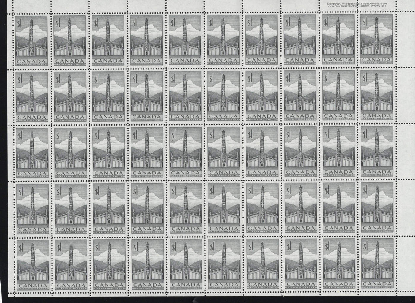 Coast Totem Pole, a mint never hinged full sheet of 50, with plate 2 inscription at upper right, fresh and overall very fine.