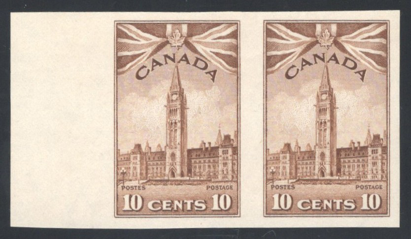 Parliament Buildings Imperforate, a mint never hinged horizontal pair, with sheet margin at left, very fine.