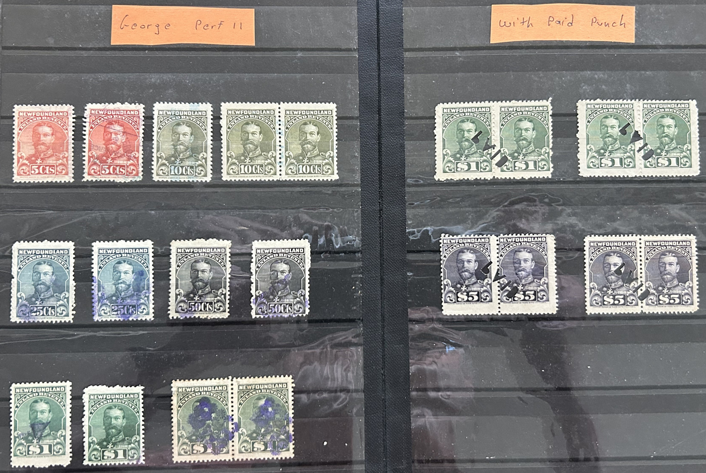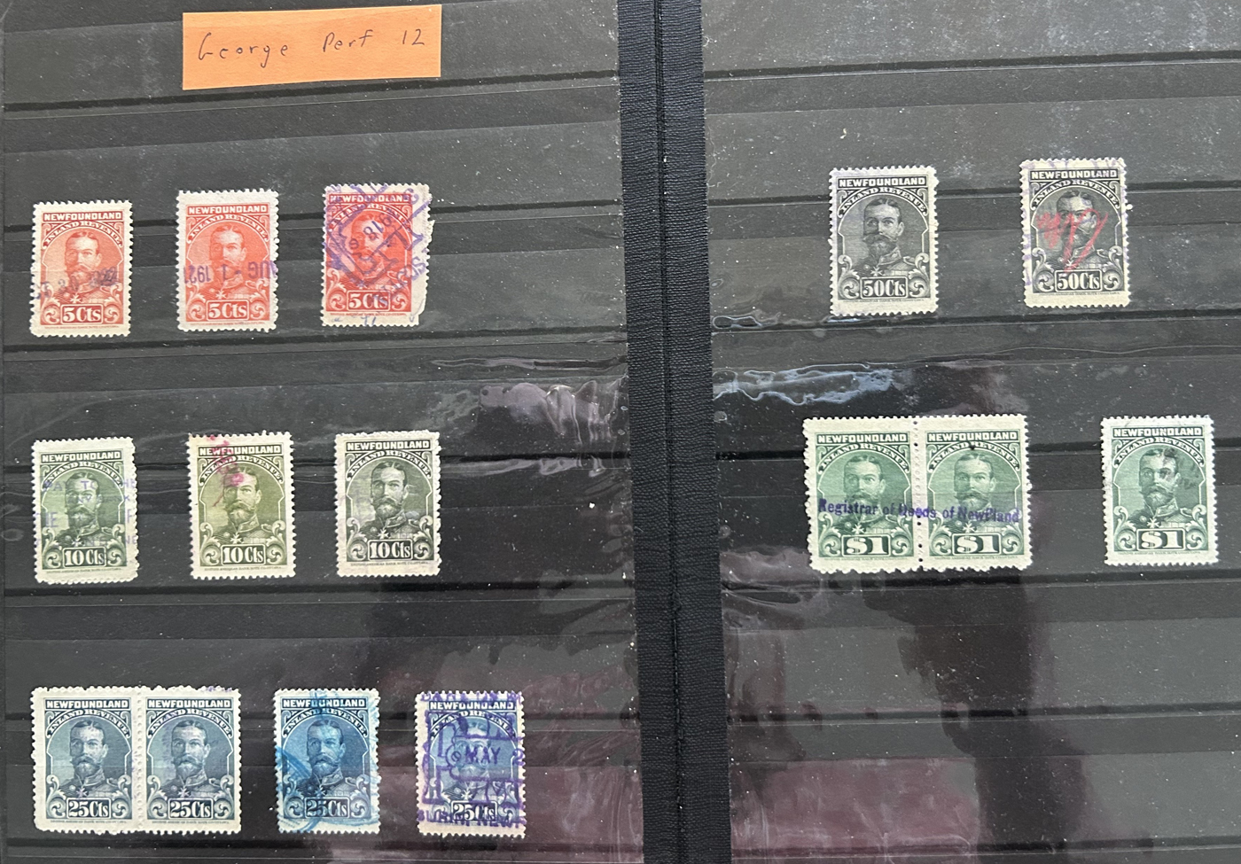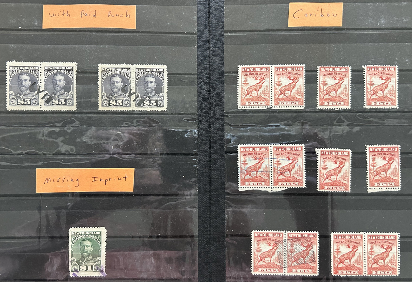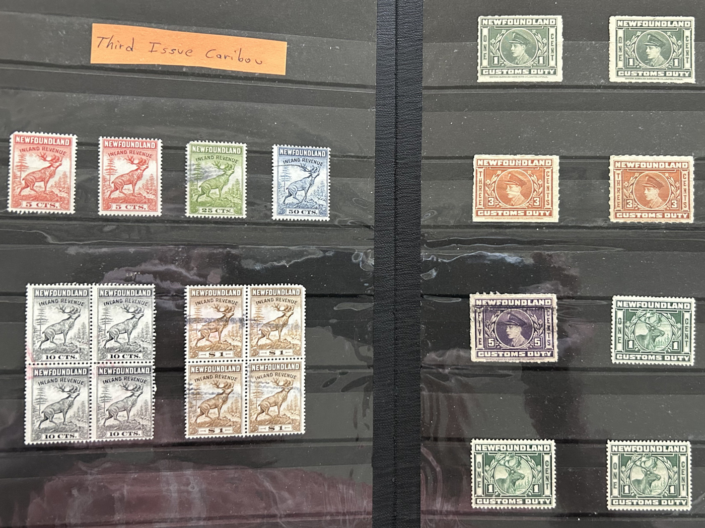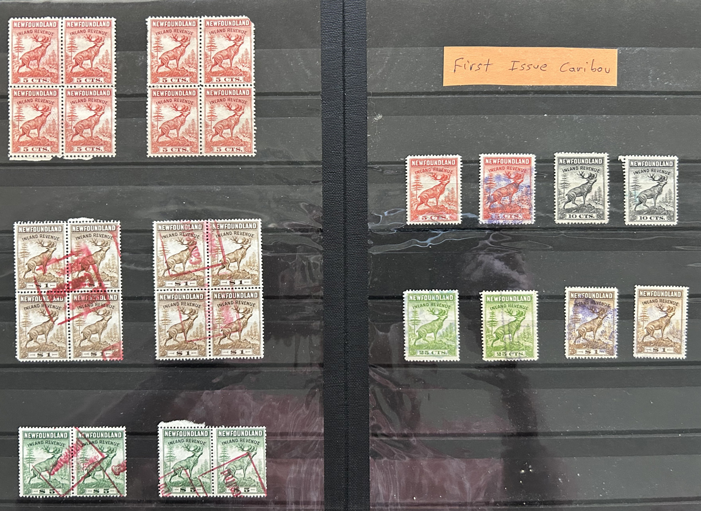 630 O   imageCollection of Used Newfoundland Revenue Stamps, all neatly displayed in a small stockbook, with many different issues / denominations / cancels types, includes blocks of four and pairs, etc. with duplication of some. Overall fine to very fine, a rarely offered group. All pages shown online. (Scan 1) (Scan 2) (Scan 3) (Scan 4) (Scan 5) (Scan 6) (Scan 7) (Scan 8) (Scan 9) (Scan 10) (All Scans)