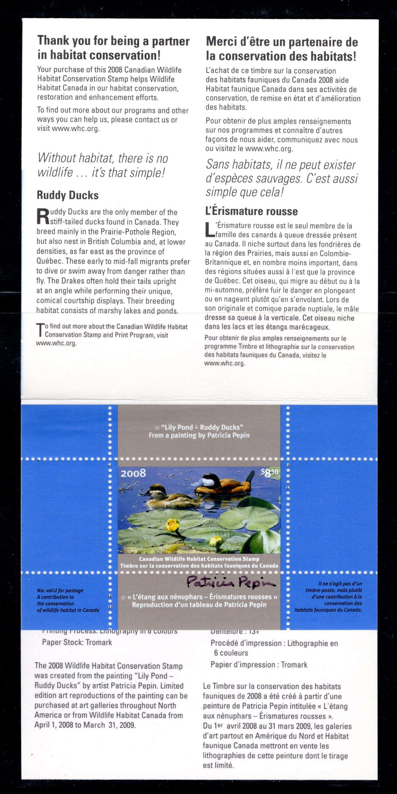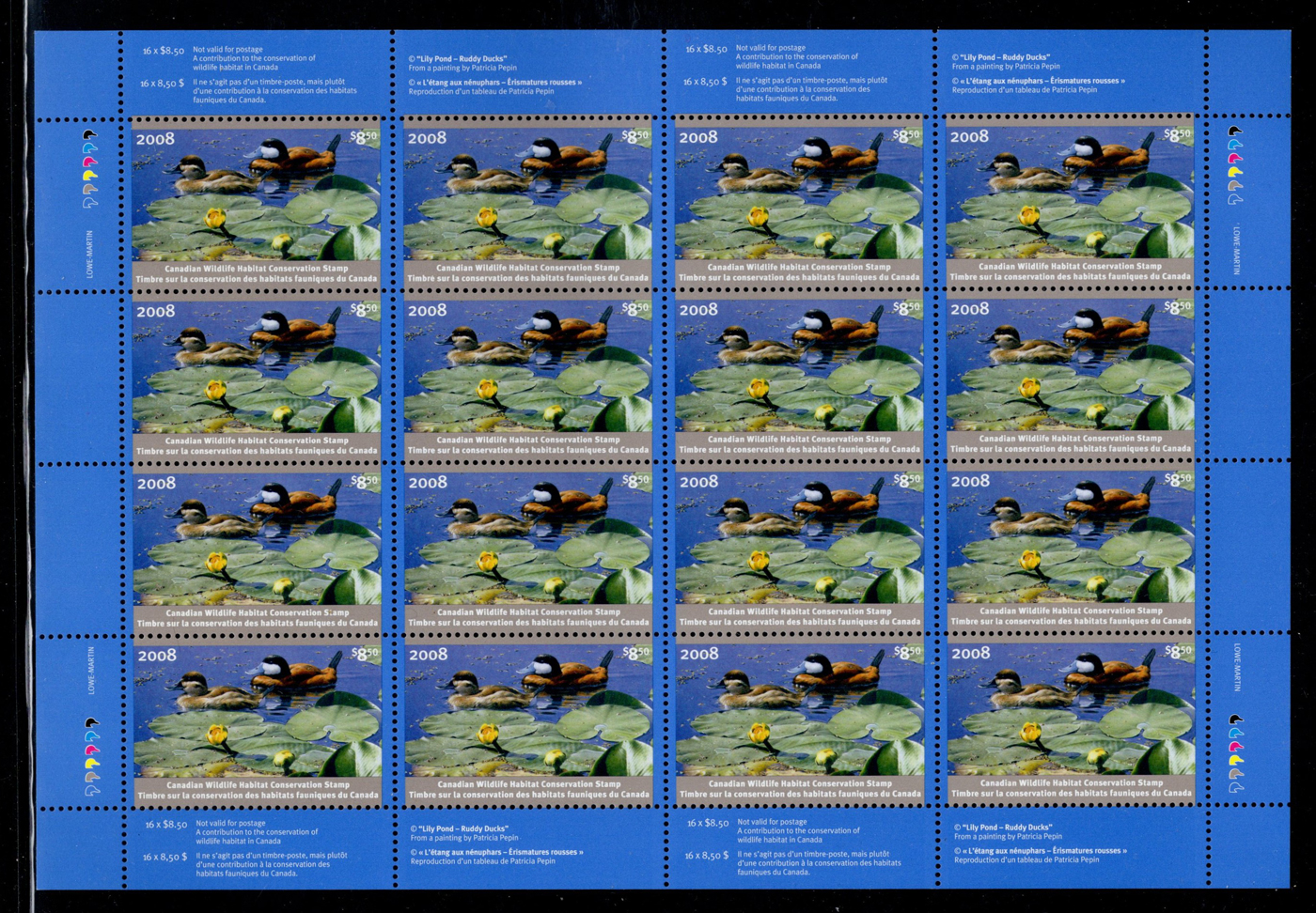 634 nh   imageGroup of Federal and Provincial Wildlife Stamps, the Federal is represented by a 2008 signed stamp, and the Provincial is represented by 14 different sheets of 8 from various provinces (1995-1996), very fine. (Scan 1) (Scan 2) (All Scans)