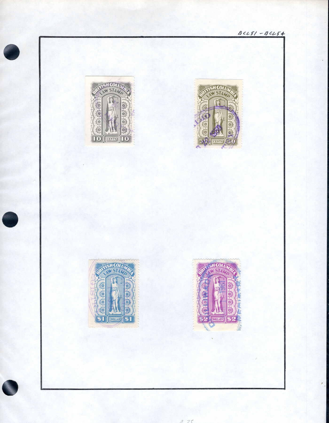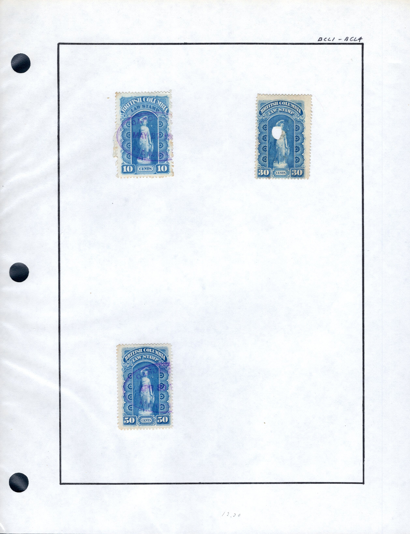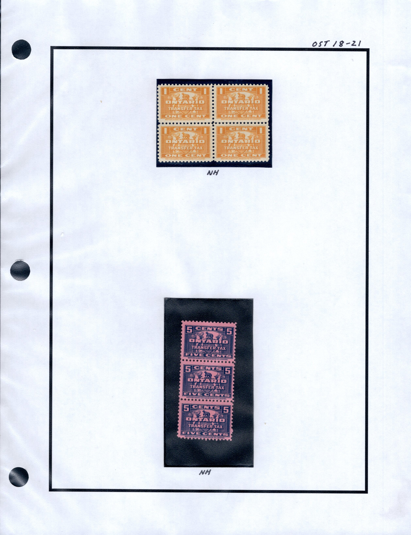 622 O/og/nh   imageOld Time Mint and Used Revenue Collection, mounted on 37 pages, with the NH in black mounts. we counted 105 different Federal revenues, 6 different Ontario revenues and 25 different British Columbia revenues (counting pairs and blocks as one). Good variety of material, noting Bill issues, Gas, Weights and Measures, Customs Duty, War Tax, Excise, Postal Notes and Scrips, for the Federal, Ontario has Law and Stock Transfer stamps, and BC has Law stamps. Overall fine, we only show a few representative pages. (Scan 1) (Scan 2) (Scan 3) (Scan 4) (Scan 5) (Scan 6) (Scan 7) (Scan 8) (Scan 9) (Scan 10) (All Scans)
