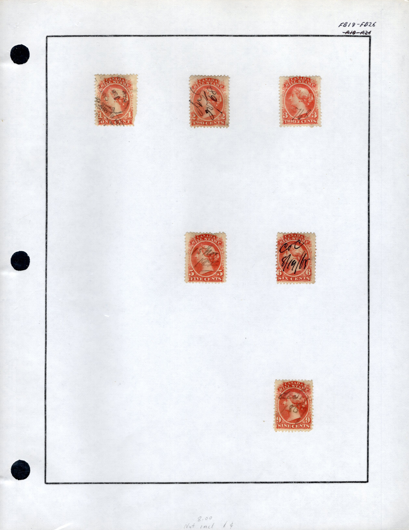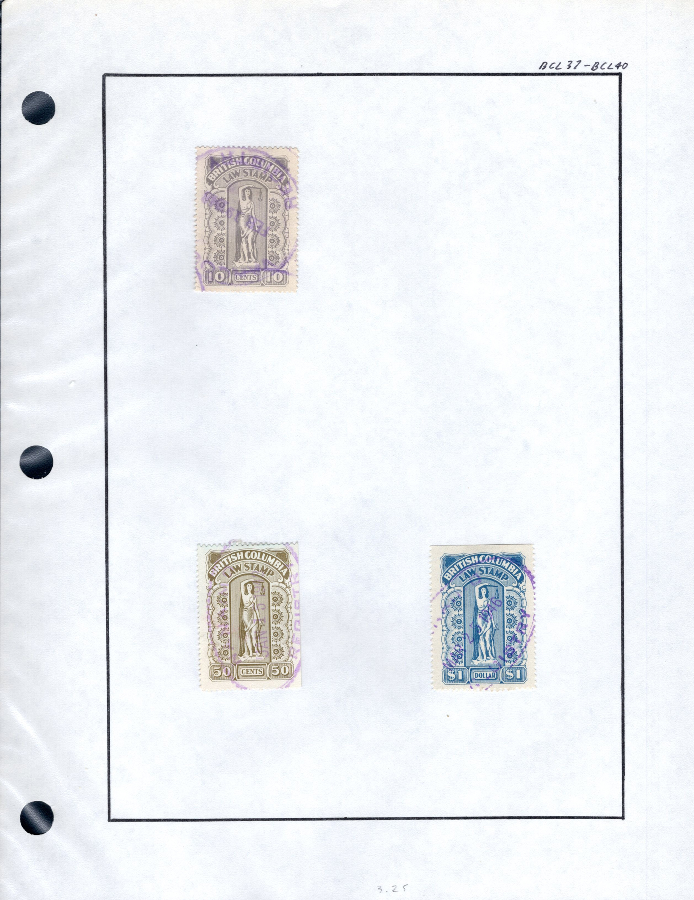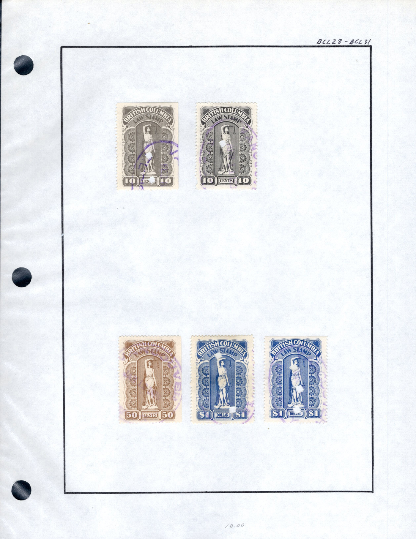 622 O/og/nh   imageOld Time Mint and Used Revenue Collection, mounted on 37 pages, with the NH in black mounts. we counted 105 different Federal revenues, 6 different Ontario revenues and 25 different British Columbia revenues (counting pairs and blocks as one). Good variety of material, noting Bill issues, Gas, Weights and Measures, Customs Duty, War Tax, Excise, Postal Notes and Scrips, for the Federal, Ontario has Law and Stock Transfer stamps, and BC has Law stamps. Overall fine, we only show a few representative pages. (Scan 1) (Scan 2) (Scan 3) (Scan 4) (Scan 5) (Scan 6) (Scan 7) (Scan 8) (Scan 9) (Scan 10) (All Scans)
