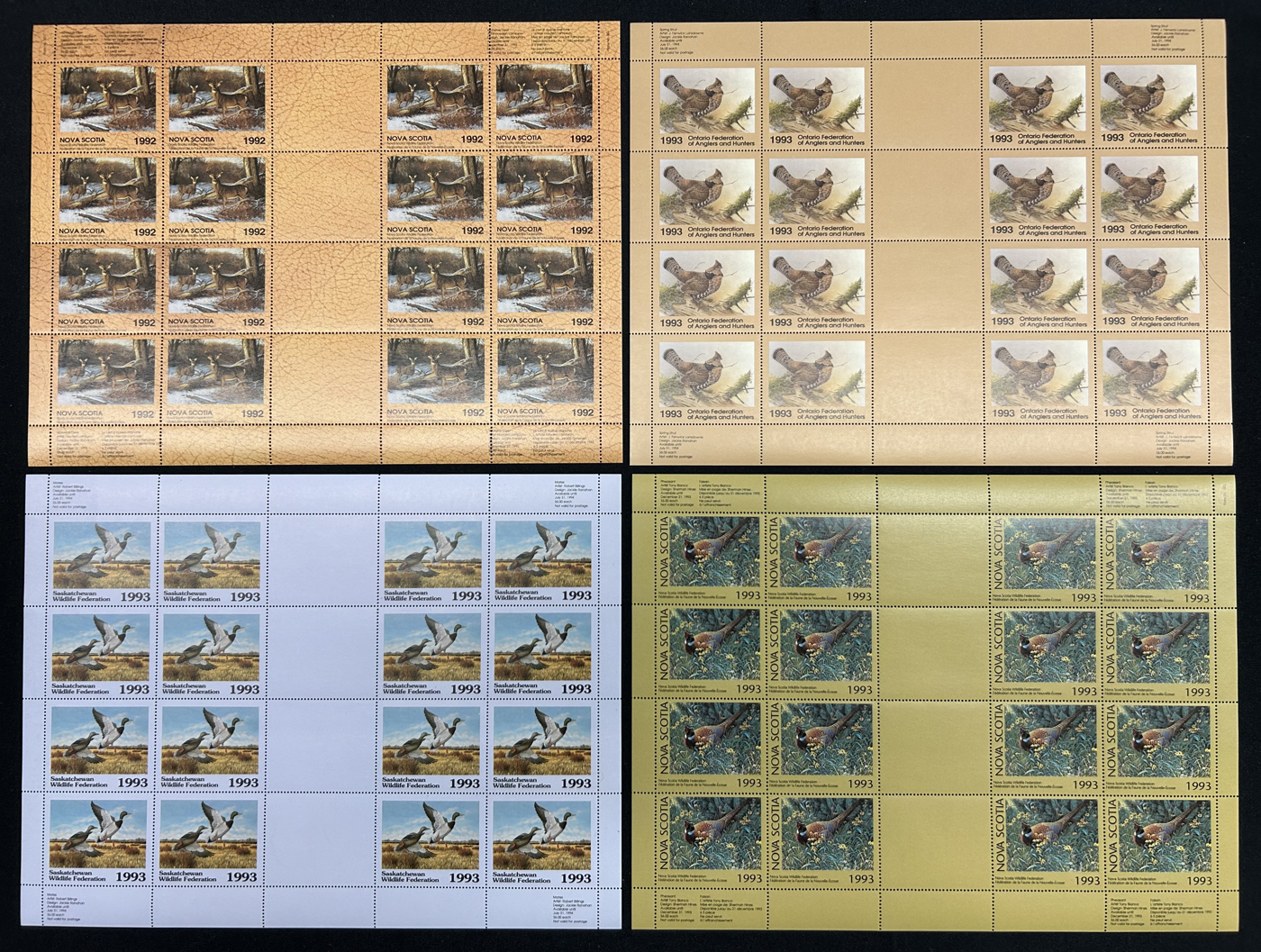 635 nh   imageGroup of 4 Different Provincial Gutter Sheets of 18, with NS (1992 and 1993), SK (1993), ON (1993). All mint never hinged, fresh, scarce and very fine.