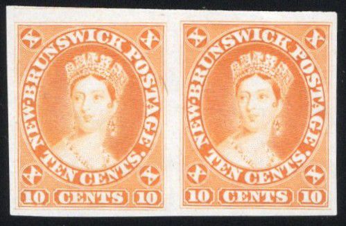 645 E/P 9 image1860 10c Queen Victoria Trial Colour Plate Proof in Orange, a horizontal pair on India paper, without the SPECIMEN overprint, very fine.