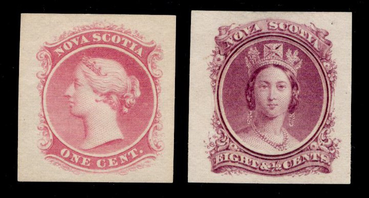 653 E/P 8TCP, 12TCP image1c and 8½c Queen Victoria Trial Colour Proofs, from the ABNCo trade sample sheets, both on wove paper, the 1c is in bright rose and the 8½c is in deep violet, both with fresh colours and large margins, very fine.