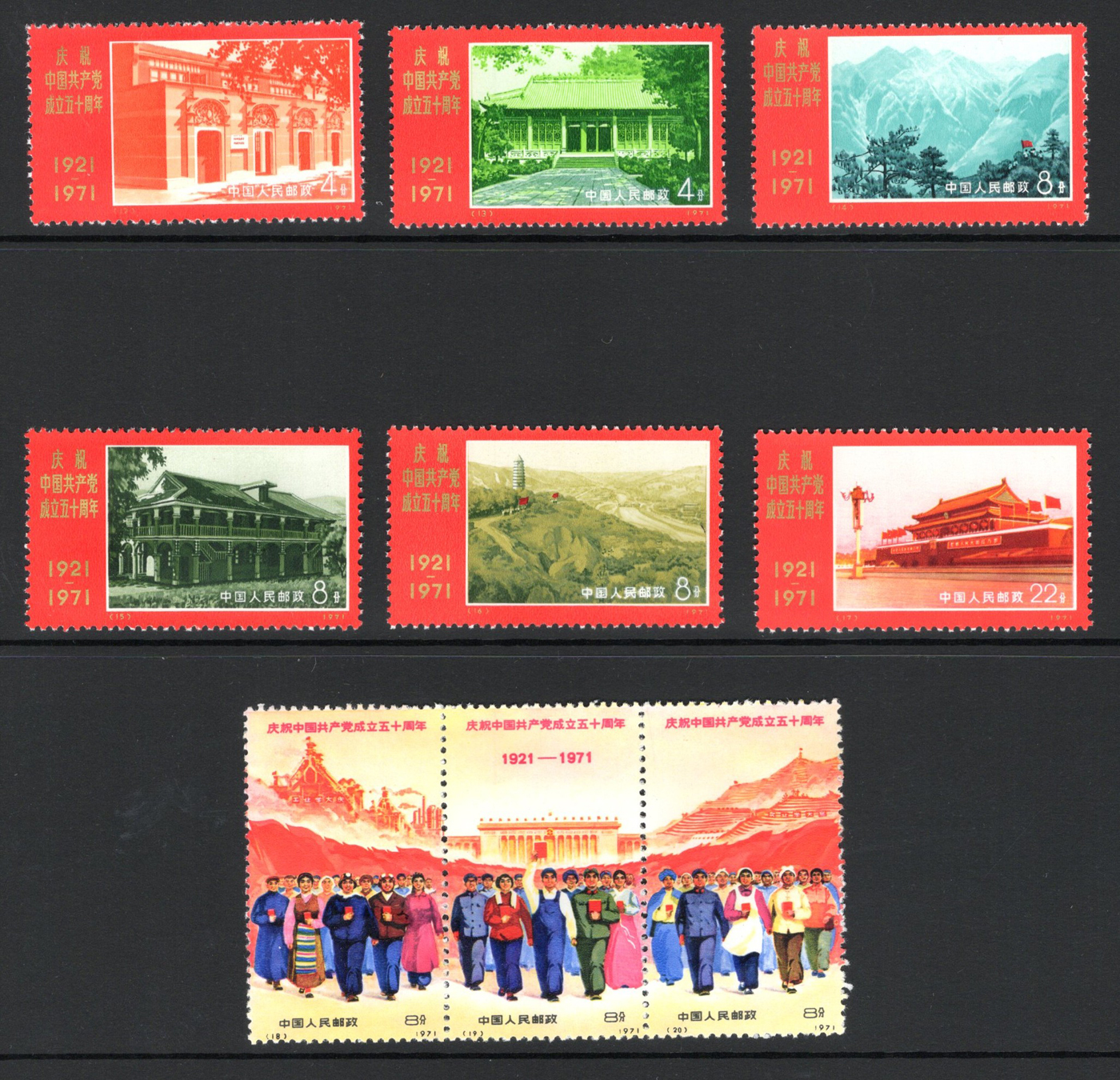 737 nh 1067-1075 image1971 Chinese Communist Party Anniversary Set, mint never hinged, the strip of three has bends, else a fresh and very fine set.