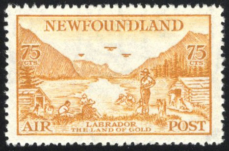 721 nh C17 var image1933 75c Bistre Labrador, Land of Gold, Perforated 14.3, with Inverted Watermark, mint never hinged, with top of watermark design (as seen from the back) facing left instead of right (Walsh position 2), fresh and very fine. (Scan 1) (Scan 2) (All Scans)