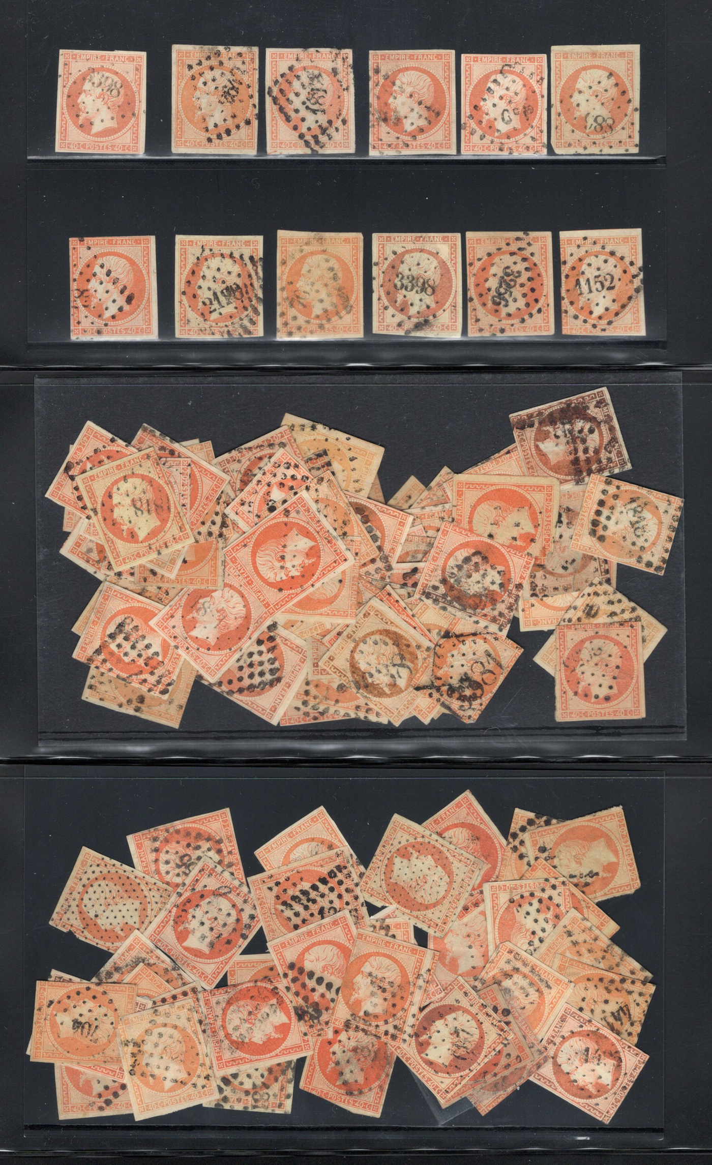 748 O 18, 18a, 18d image1853 40c Orange Napoléon Imperforate Study Lot of 133 used singles, with shades, postmarks, etc. Overall fine to very fine.